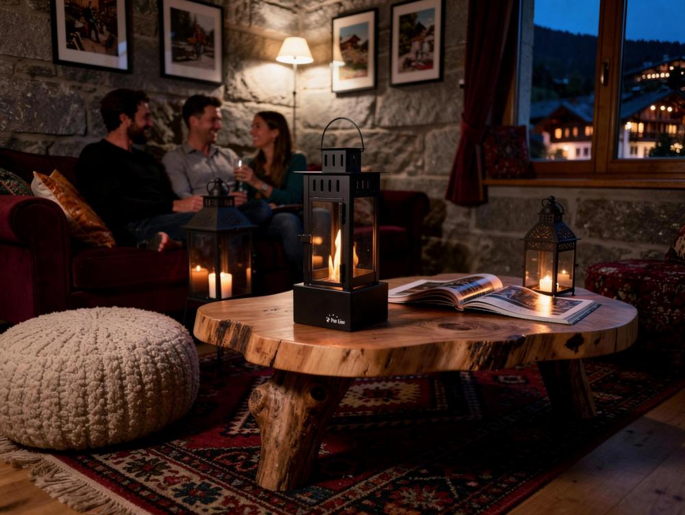Durch seine Größe (LxBxH: 15 x 15 x 38 cm), sein geringes Gewicht (2,8 kg) und sein modernes Design eignet er sich perfekt für den Einsatz auf Terrassen und in Gärten, auf dem Boden oder auf Möbeln und trägt dazu bei, eine gemütliche, warme und echte Atmosphäre zu schaffen.