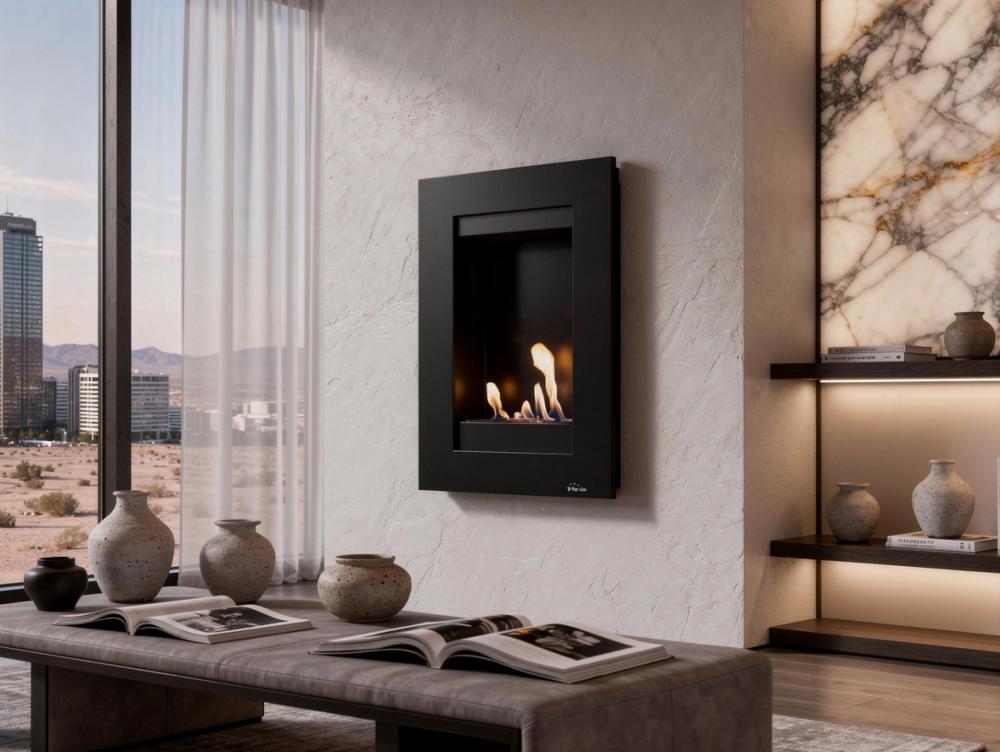 Inclui kit de pendurar, e o seu tamanho (LxDxH: 50 x 75 x 20 cm), a sua leveza (9 kg) e o seu design moderno tornam-no perfeito para o colocar na parede ou embutir, sem necessidade de obras ou saída de fumo, ajudando a criar uma atmosfera acolhedora, quente e genuína.