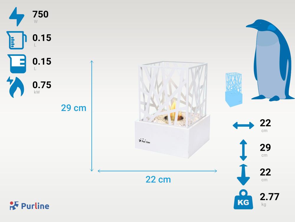 Its tamanho (LxDxH: 22 x 22 x 29 cm), a sua leveza (2,3kg) e o seu design moderno tornam-na perfeita para utilização em terraços e jardins, no solo ou em mobiliário, ajudando a criar um ambiente acolhedor, quente e genuíno.