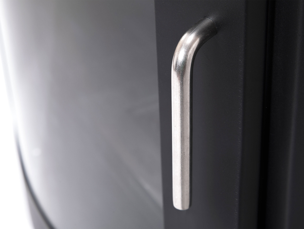 O SILENUS é projetado em uma forma quadrada com uma base oval e um pára-brisas de vidro temperado que permite que você veja as chamas dentro.