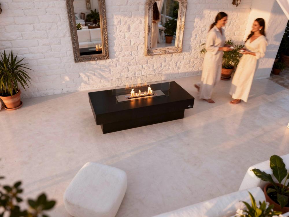 A lareira biológica NOTOS foi concebida como uma mesa com um centro contendo um tanque de 3L de capacidade e emitindo uma chama ajustável. O seu acabamento em aço esmaltado preto e vidro temperado trará elegância e distinção à sua casa. O seu poder de aquecimento é equivalente a 3KW.