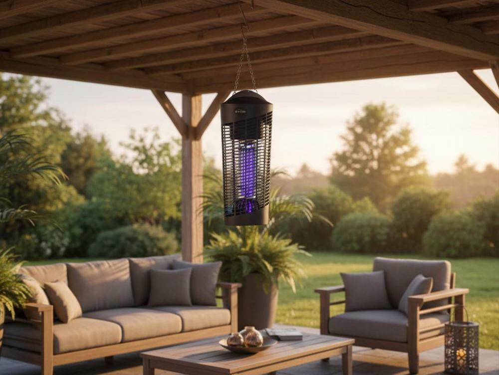 Assassino de insectos de chão ou de mesa. Adequado para uso exterior e corpo resistente feito de ABS que emite uma potente luz ultravioleta (25W).