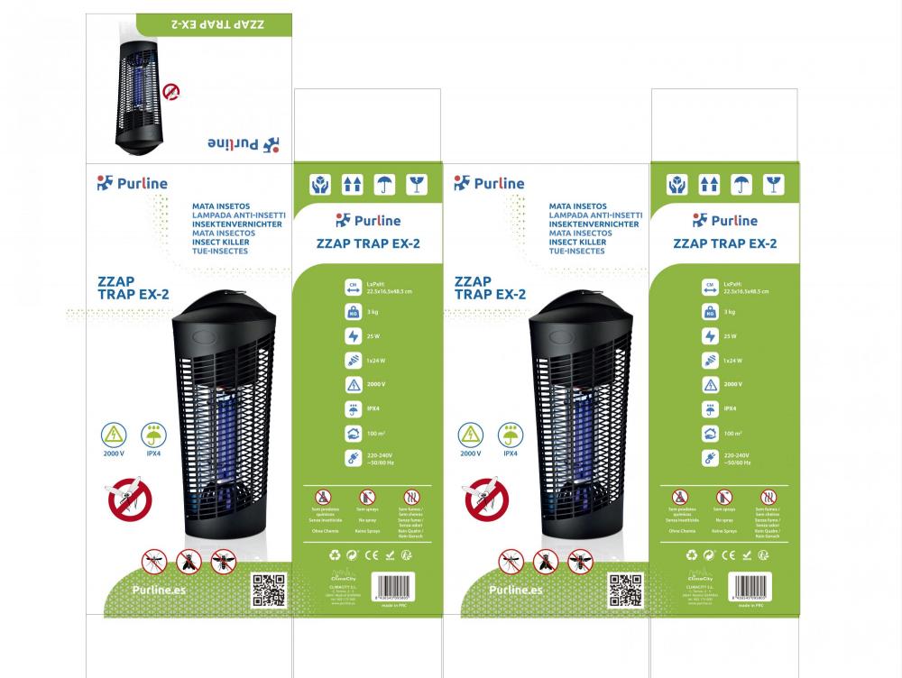 Os mosquitos já não serão um problema graças a este insecto assassino da Purline. Concebida para ser colocada numa parede, tecto ou mesa, a ZZAP TRAP EX-2 funciona ligada à rede e emite uma luz ultravioleta (24W) que atrai os insectos, prende-os e mata-os rapidamente, sem cheiro e sem deixar vestígios. Seja em casas, escritórios, restaurantes ou no exterior, este insecto assassino garante a sua eficácia em superfícies até 100m2.