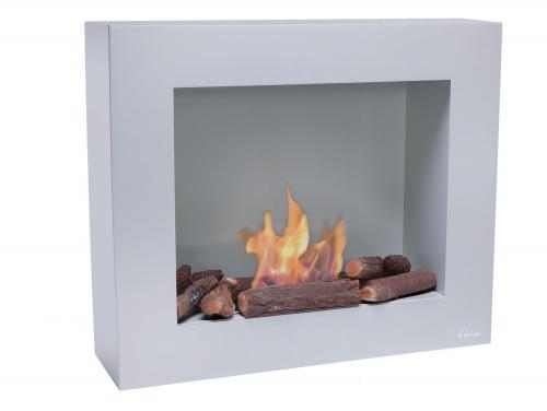 Característica em destaque: Lareira a etanol de 1,75kW e 1,2L de capacidade. Desenho rectangular em aço lacado a cinzento. Inclui um kit de troncos decorativo. jarro e funil para enchimento fácil. Sem fumos, odores ou cinzas.