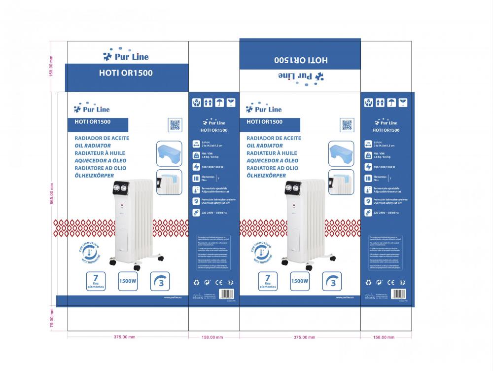 O modelo HOTI OR2800 é um aquecedor equipado com uma luz piloto operacional e um sistema de segurança para evitar o sobreaquecimento e o sobreaquecimento, de modo que se tombar ou atingir uma temperatura perigosamente elevada, desliga-se automaticamente. Oferece um controlo mecânico, termóstato regulável e três níveis de potência.