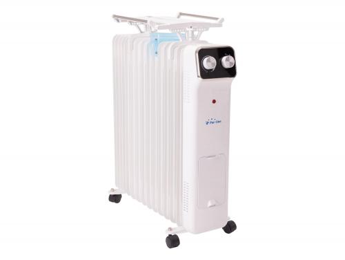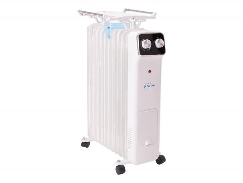 O seu design é clássico e compacto, feito de aço inoxidável branco, e o seu tamanho (CxPxA: 46 x 76,5 x 14,5 cm), solidez e as suas rodas permitirão movê-lo de acordo com as suas necessidades, sendo ideal para salas até 28m2. Inclui um pequeno estendal dobrável muito útil para secar a roupa, e um recipiente para humidificar o ambiente.