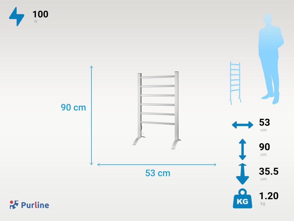 O NTW-05 é um produto completo que funciona como secador de toalhas, aquecedor de roupa e, ao mesmo tempo, servirá de apoio ao seu sistema de aquecimento. Com acabamento em prateado e um design minimalista, é um toalheiro com pés incorporados, pelo que não necessita de qualquer tipo de instalação. Este modelo dispõe de um termóstato de segurança, pelo que, se o toalheiro sobreaquecer, desliga-se automaticamente.