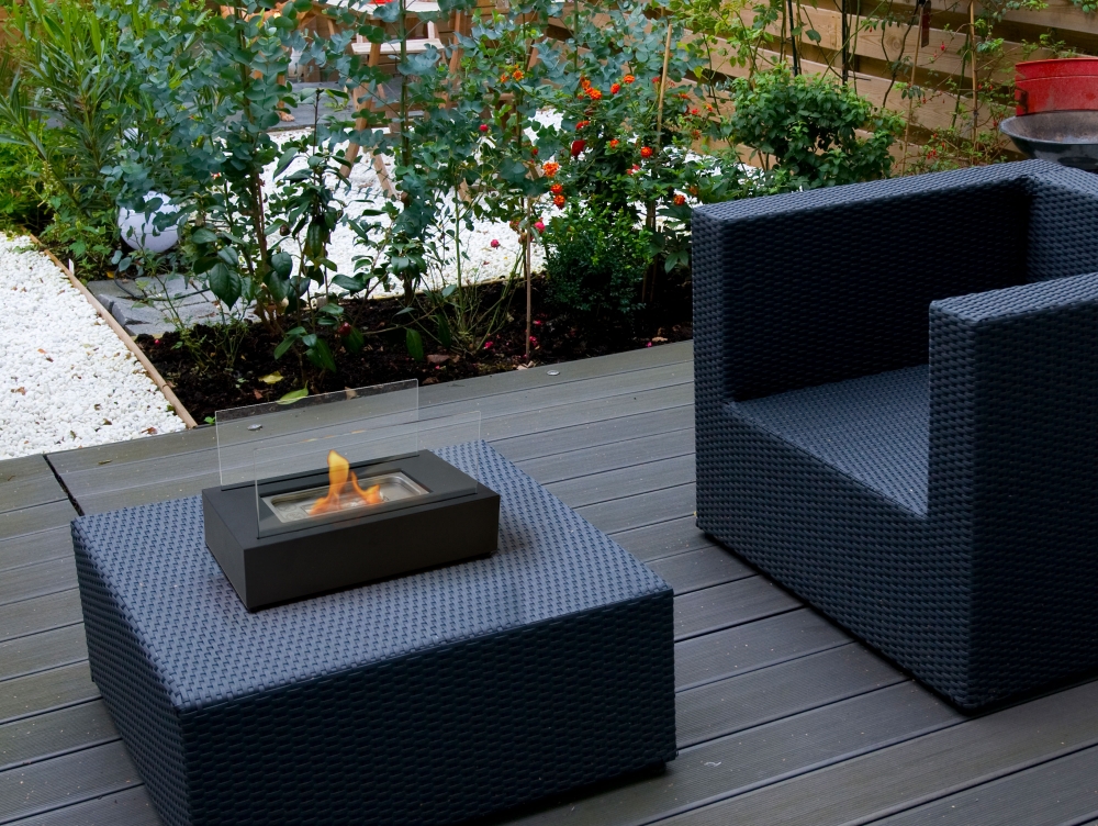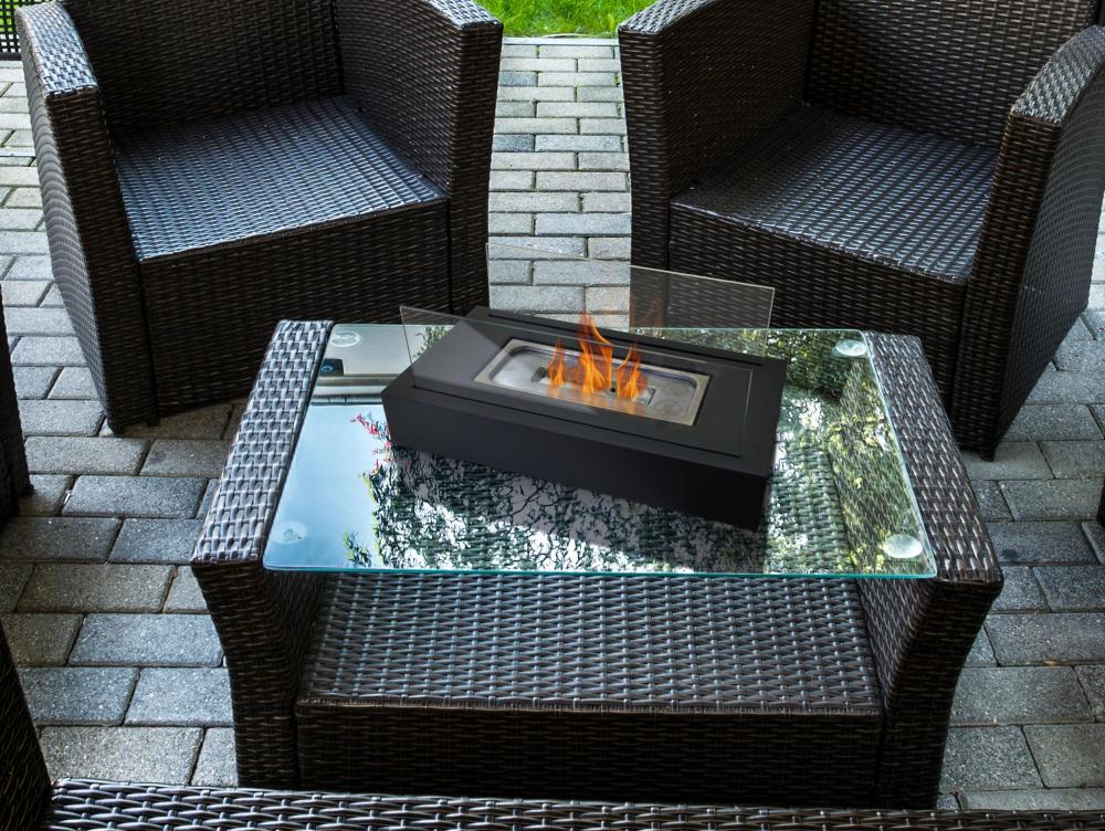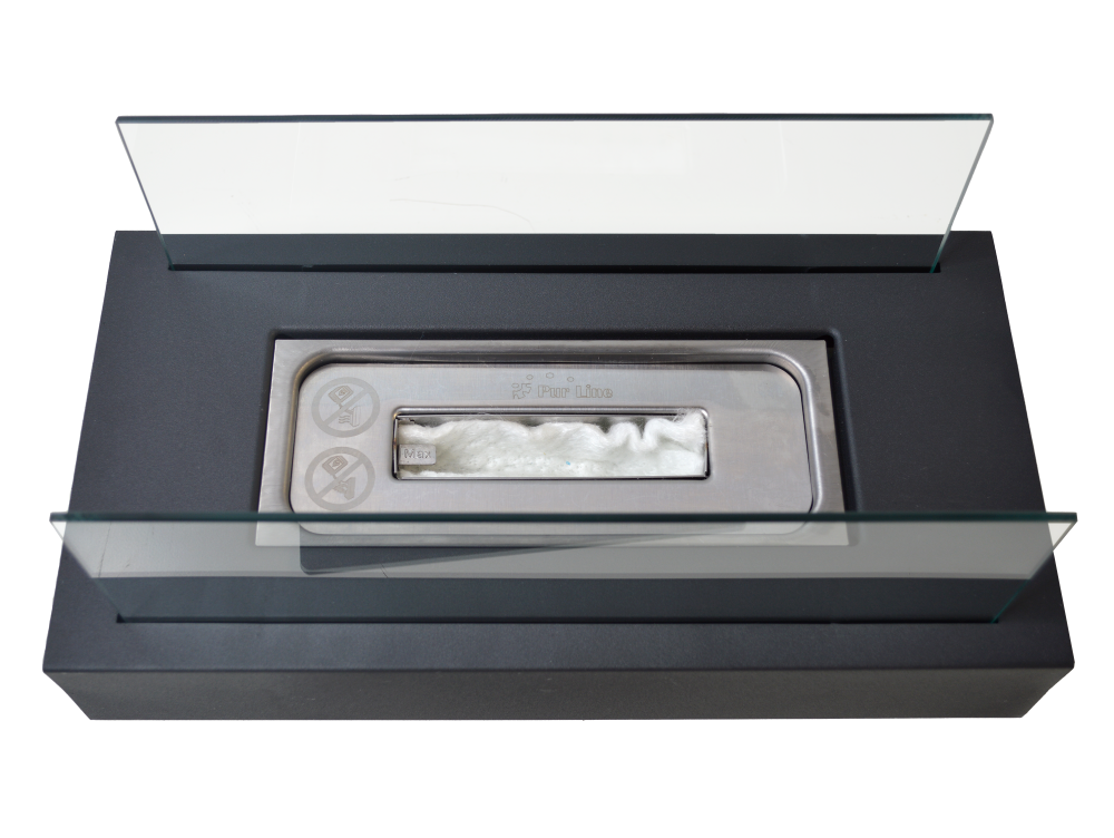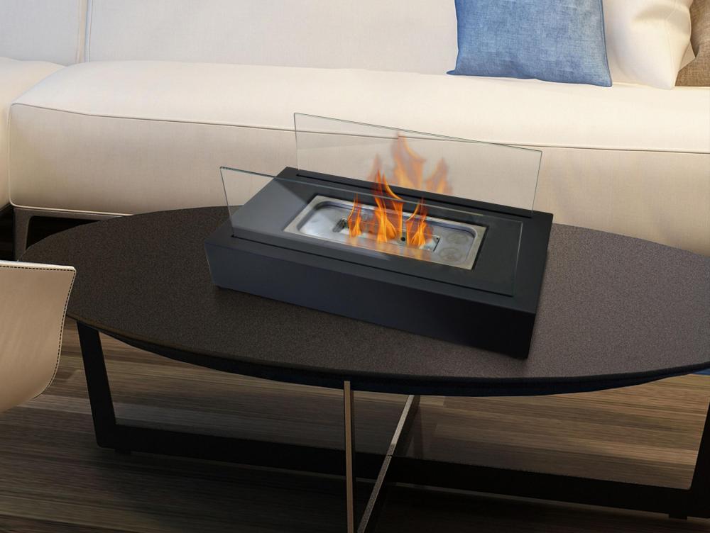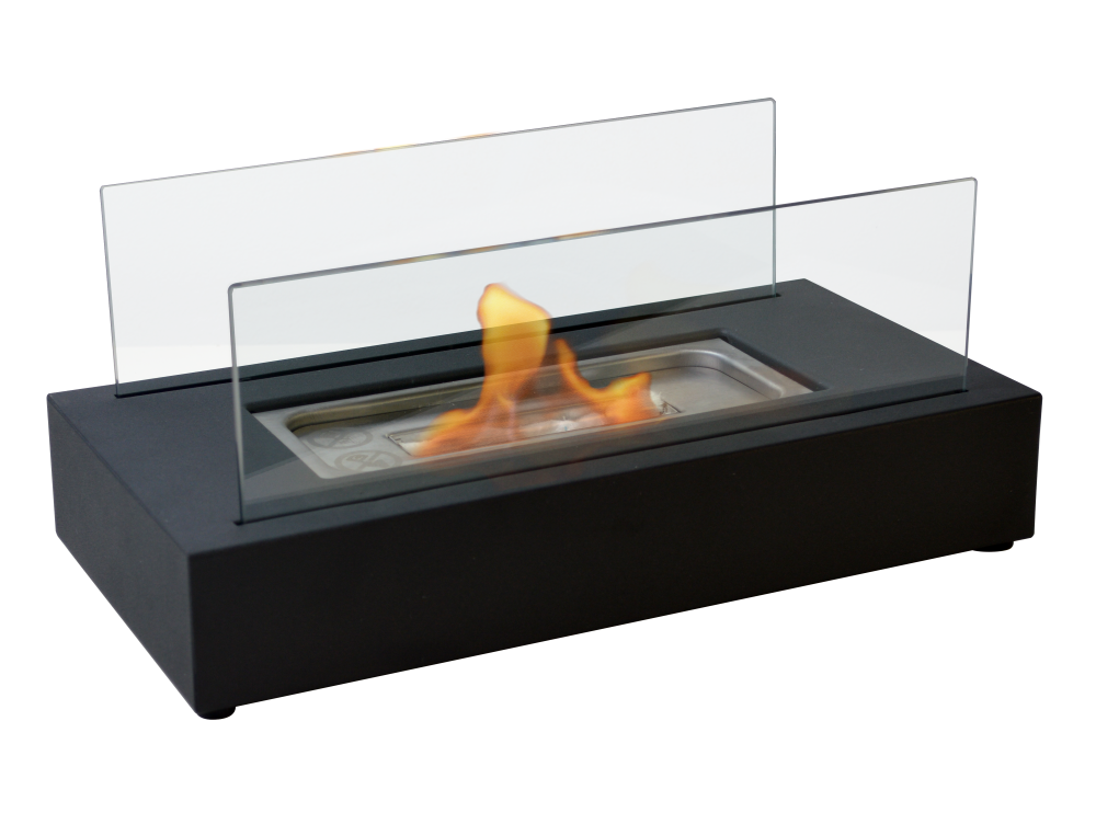 Lareira a etanol. ideal para colocar em superfícies. Tem duas telas de vidro temperado e produz chamas reais. sem fumo, cinzas ou odores.
