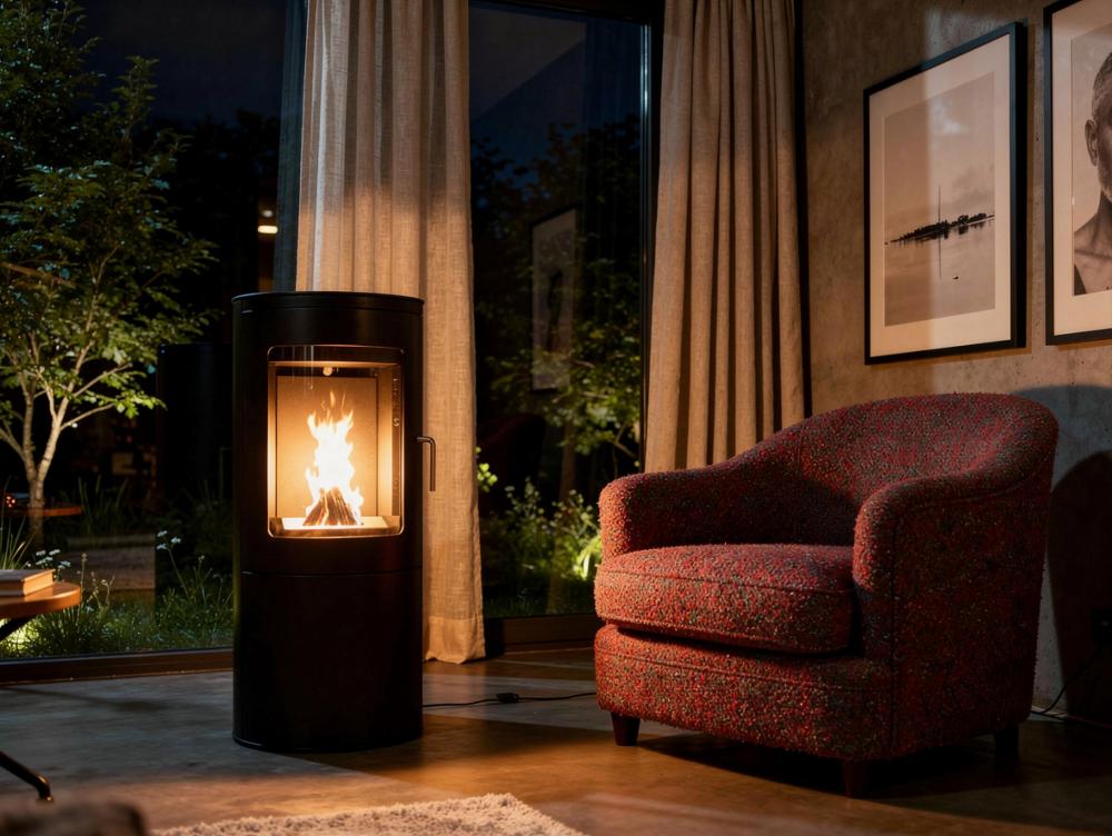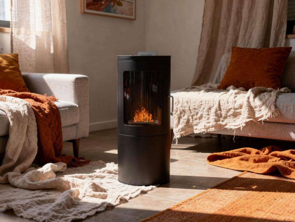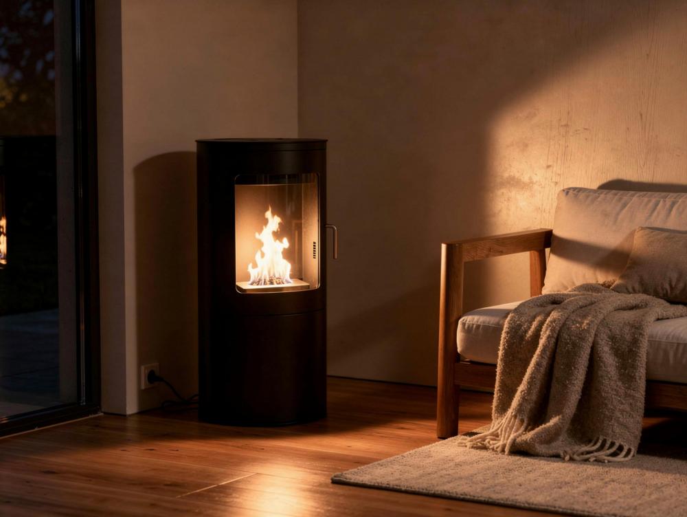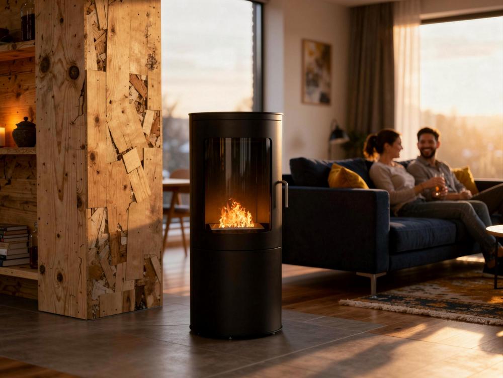 Fogão a etanol preto com porta de vidro temperado