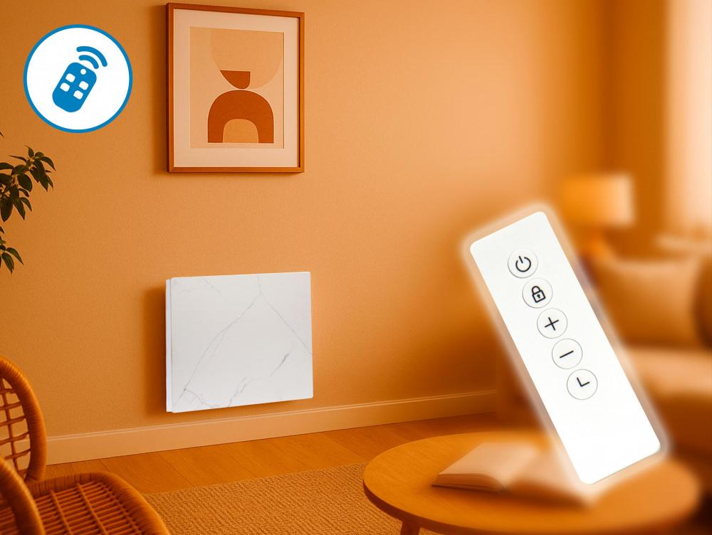 A tecnologia MARBLY A1000 dá-lhe um controlo total: pode programá-lo diariamente e semanalmente a partir do seu smartphone ou tablet através da sua aplicação ligada a WiFi, ou utilizar o seu controlo remoto para uma operação ainda mais conveniente. Também possui uma função de deteção de janela aberta, otimizando o consumo de energia.