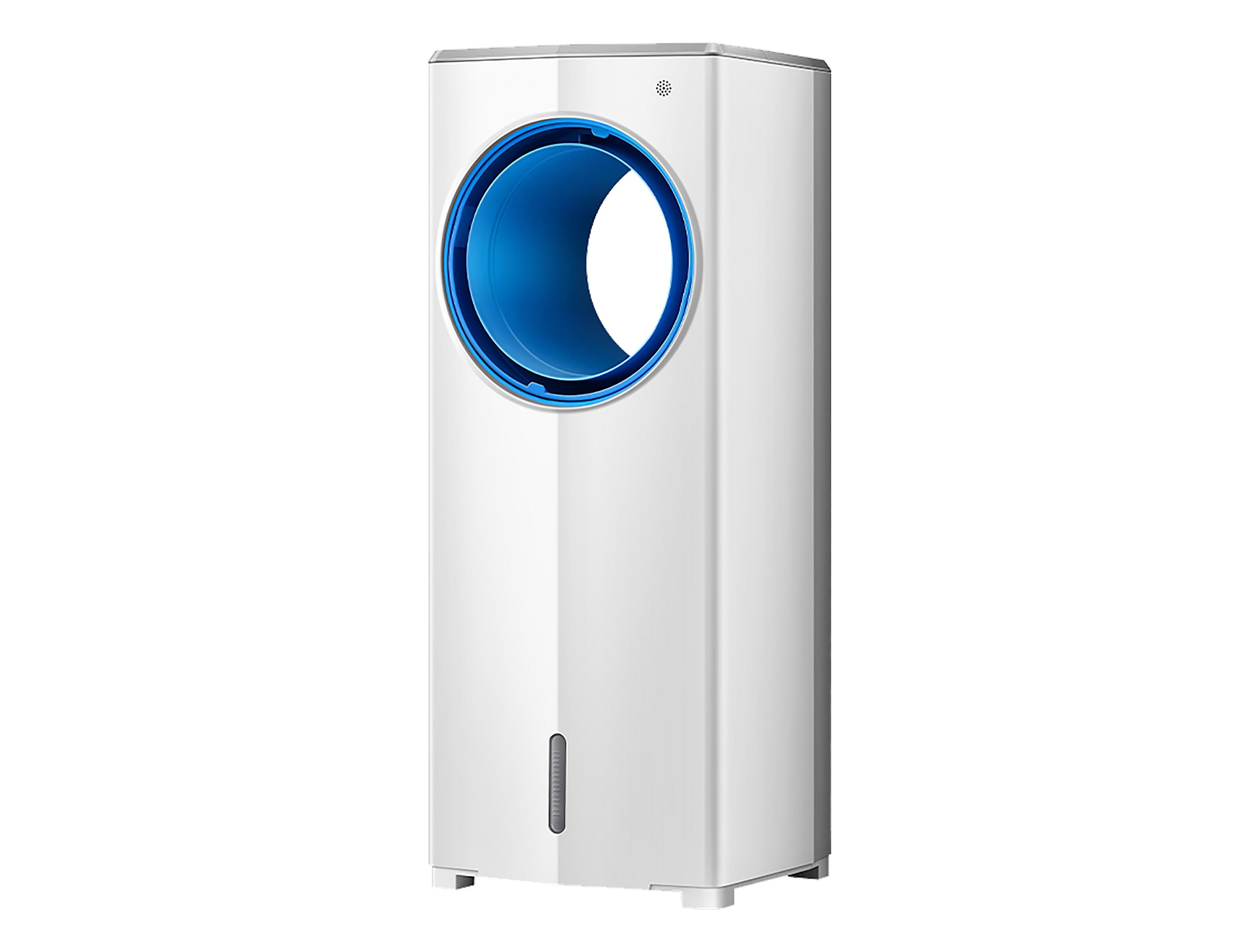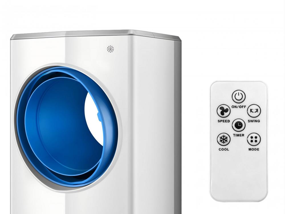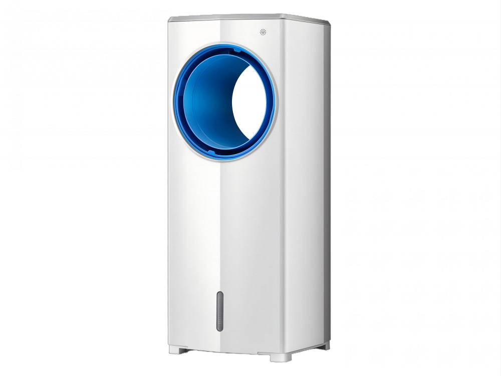 Arrefecedor evaporativo sem lâminas, design compacto. 3 velocidades. Balanço automático. Enchimento do depósito por cima ou por baixo. Temporizador de 7h, Controlo remoto. Controlo digital tátil. Caudal: 470 m3/h. Depósito de água de 4 litros.