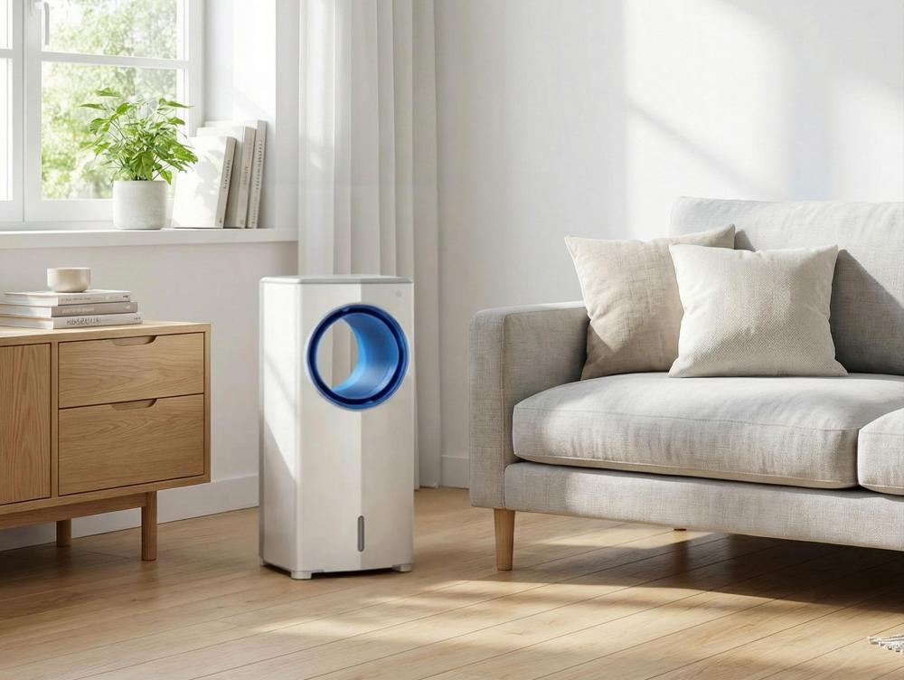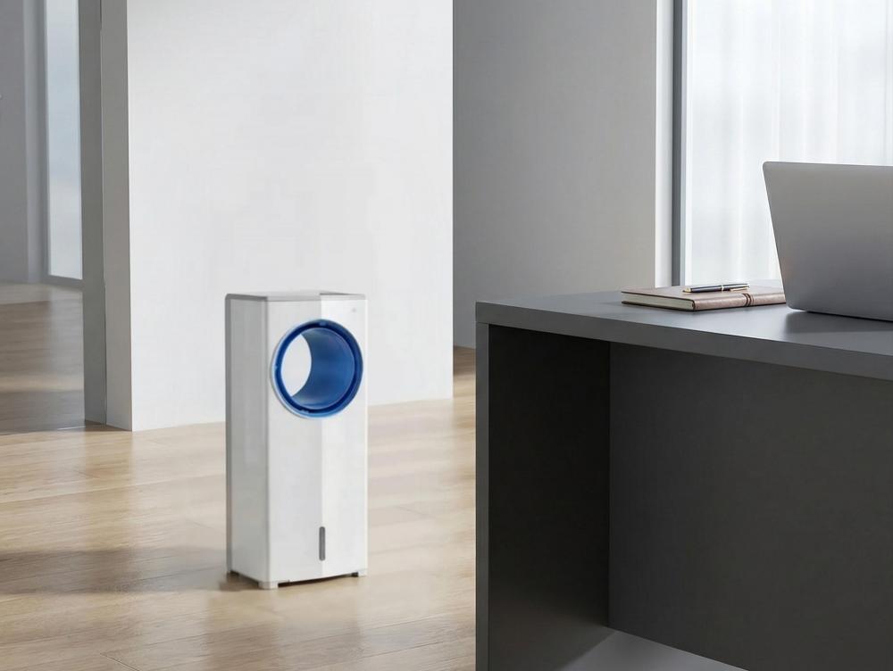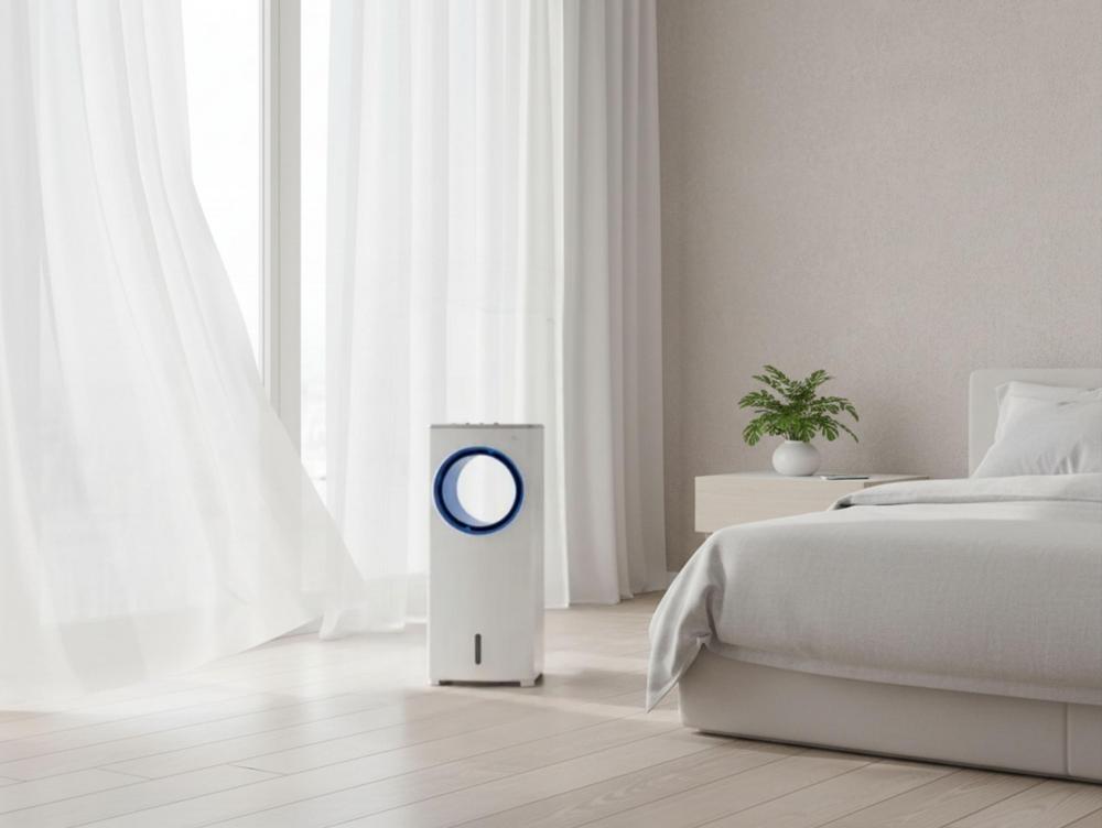 Esta geleira sem lâminas funciona através de uma tecnologia de arrefecimento avançada que retira água do seu depósito de 4 litros e, graças ao seu painel de 4 litros de depósito de água, é capaz de arrefecer o ar da sua casa sem o incómodo dos aparelhos de ar condicionado tradicionais.