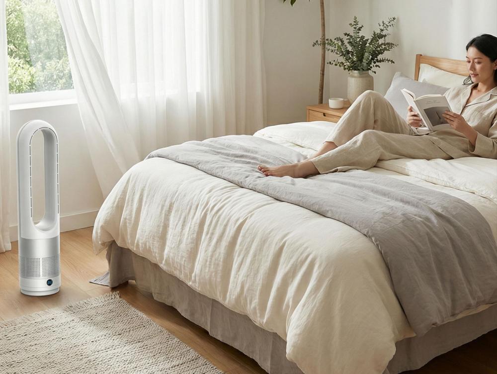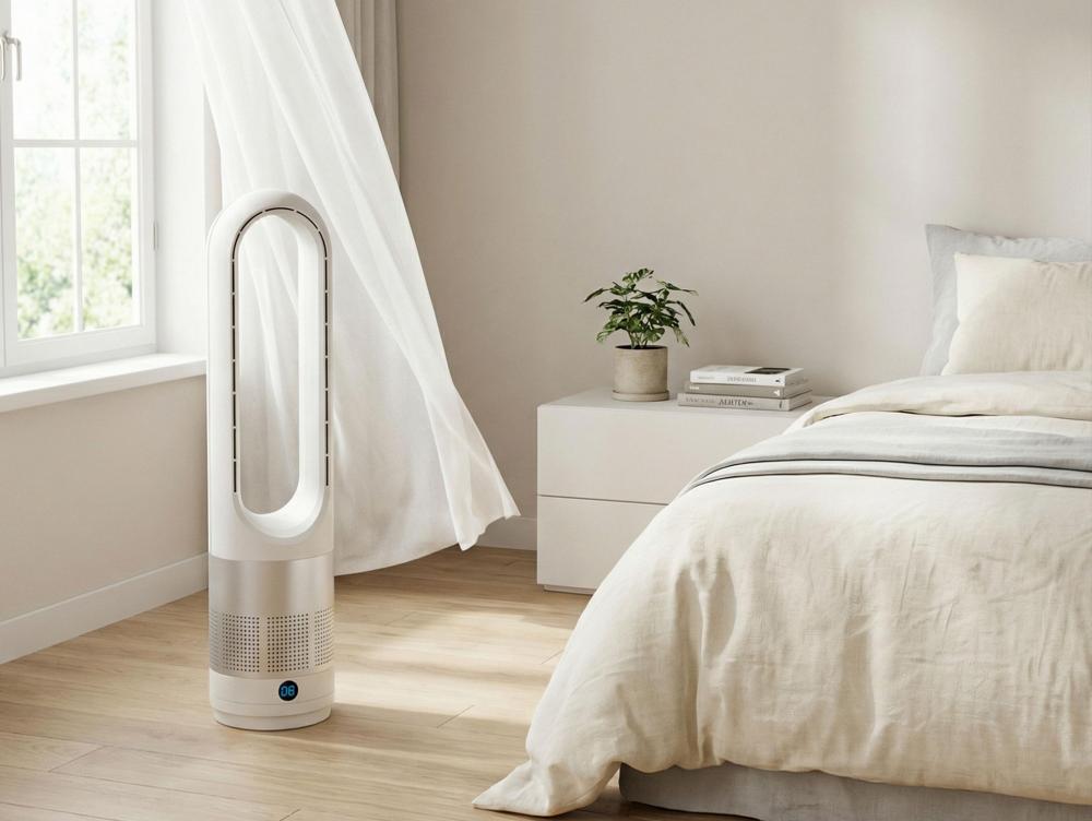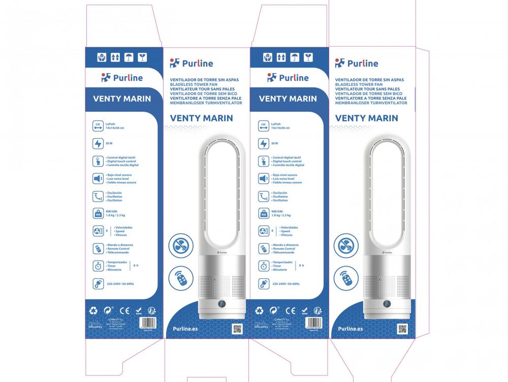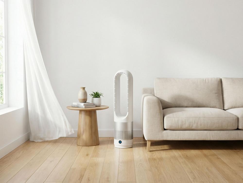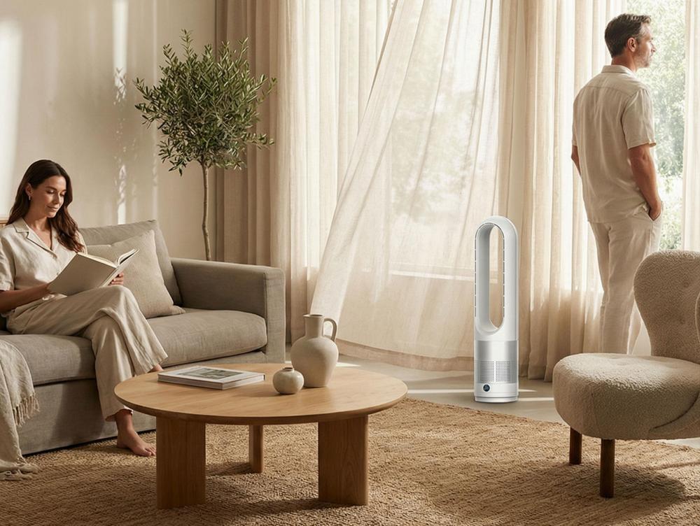 A ventoinha sem pás VENTY MARIN da Purline arrefece o seu espaço de forma rápida, eficiente e silenciosa, criando uma atmosfera limpa e agradável sem o incómodo das ventoinhas tradicionais. O seu design elegante e moderno integra-se perfeitamente em qualquer divisão.