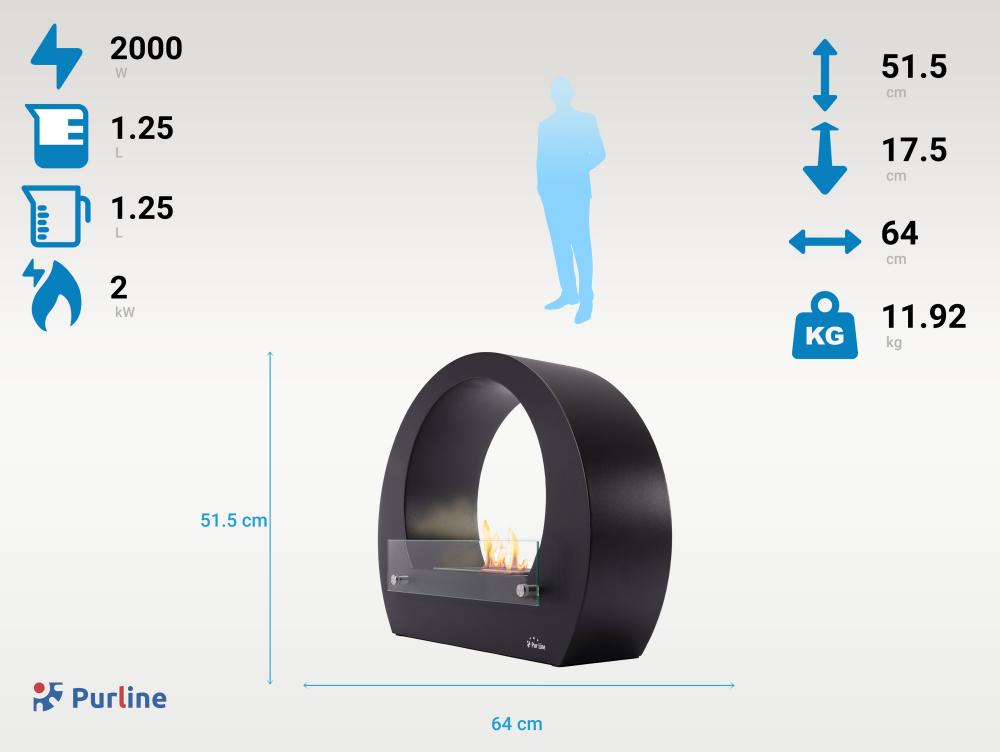 Haben Sie schon einmal daran gedacht, einen Kamin in Ihrem Haus zu haben? Dank Purline können Sie das jetzt erreichen. Alles, was Sie brauchen, ist dieser Biokamin, ein wenig seines natürlichen flüssigen Brennstoffs und schon haben Sie ein Feuer mit echten Flammen und Wärme in Ihrem Wohnzimmer, Schlafzimmer oder Büro, sauber, ohne Rauch oder Asche und leicht zu pflegen. Außerdem ist er mit Keramikfasern ausgestattet, um Ihre Sicherheit zu gewährleisten. Durch seine Größe (LxBxH: 90x36x78cm), seine Robustheit (28kg) und sein modernes Design eignet er sich perfekt für den Einsatz auf dem Boden Ihrer Terrasse, Ihres Gartens oder Ihres Wohnzimmers und trägt dazu bei, eine gemütliche, warme und echte Atmosphäre zu schaffen.