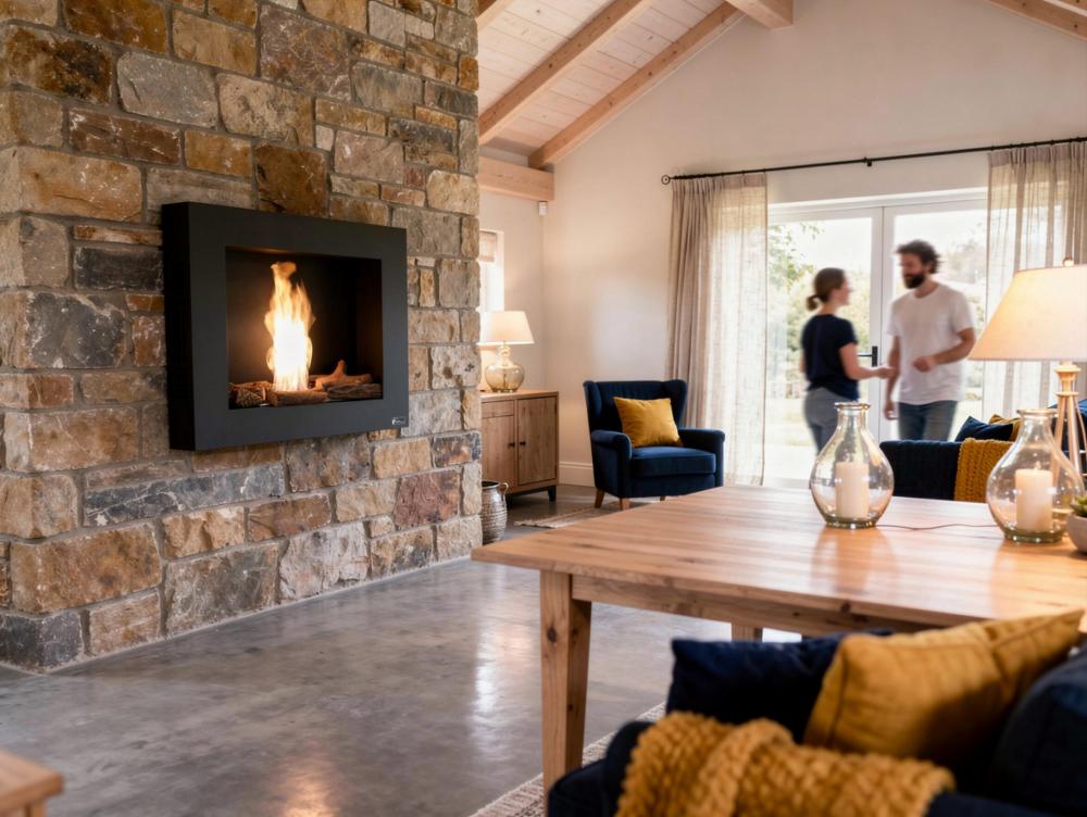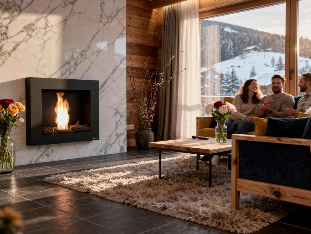Inclui kit de suspensão, e o seu tamanho (LxDxH: 70 x 20 x 20 x 60 cm), a sua leveza (18,5kg) e o seu design moderno tornam-no perfeito para o colocar na parede ou embutir, sem necessidade de obras ou saída de fumo, ajudando a criar uma atmosfera acolhedora, quente e genuína.