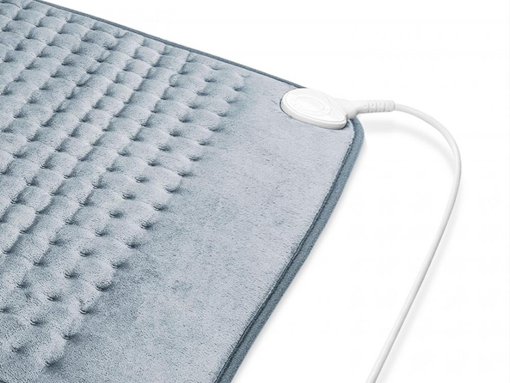 Feita de lã sintética cinzenta, muito agradável ao toque, aquece rapidamente atingindo até 100W de potência e tem 3 níveis para controlar a temperatura, além disso pode programar o seu desligamento automático após 90 minutos.
