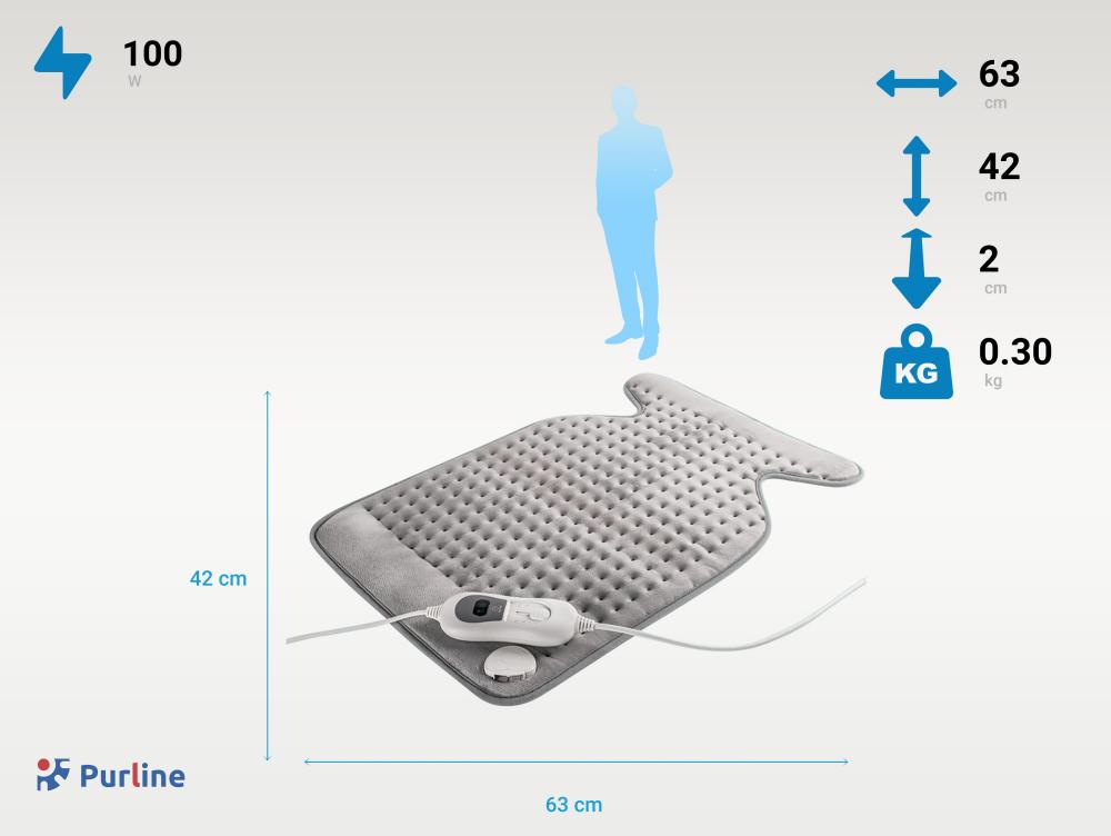 Fabricado em lã sintética cinzenta, muito agradável ao toque, aquece rapidamente atingindo até 100W de potência e tem 3 níveis para controlar a temperatura, podendo ainda ser programado para se desligar a qualquer momento.