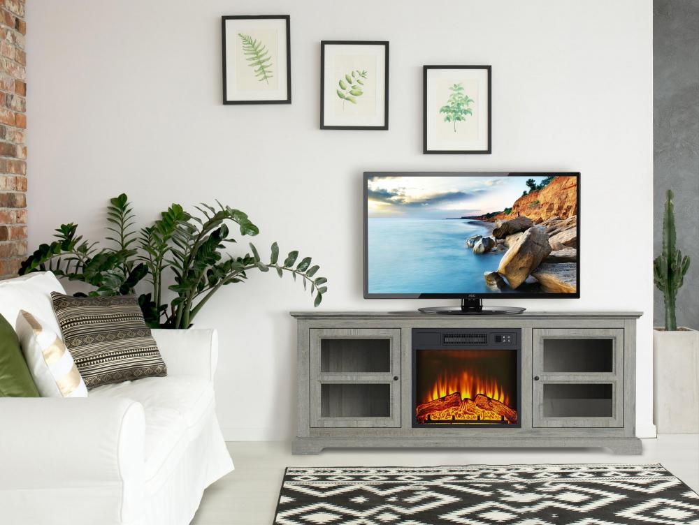 Aparador com lareira eléctrica cor cinzenta 2000W