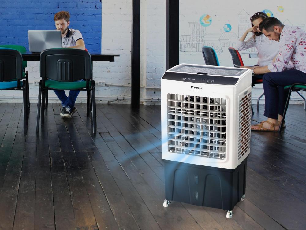 Já alguma vez pensou num sistema de ar condicionado económico, simples e cómodo para a sua casa? Este refrigerador evaporativo Purline é a solução para sobreviver ao calor, pois funciona graças a uma tecnologia de refrigeração avançada e silenciosa que retira água do seu depósito (35L) e graças ao seu painel triplo de celulose evaporativa arrefece e expulsa-a, arrefecendo rapidamente o ambiente sem compressores ou refrigerantes químicos, totalmente ecológico e bom para a sua saúde.
