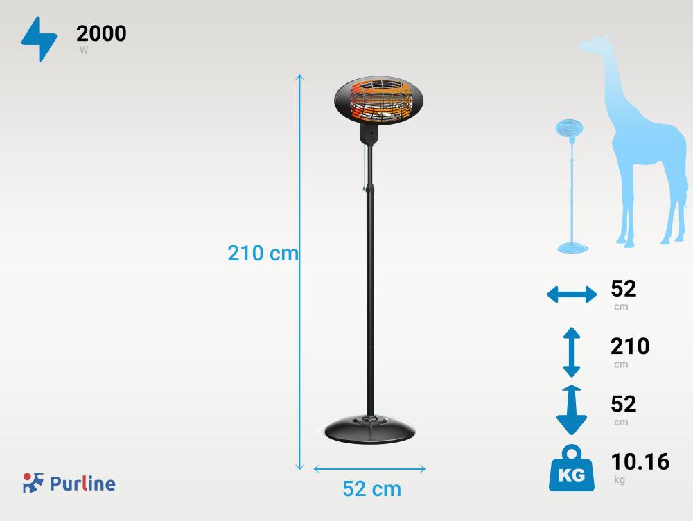 Aquecedor eléctrico exterior com altura ajustável 2000W