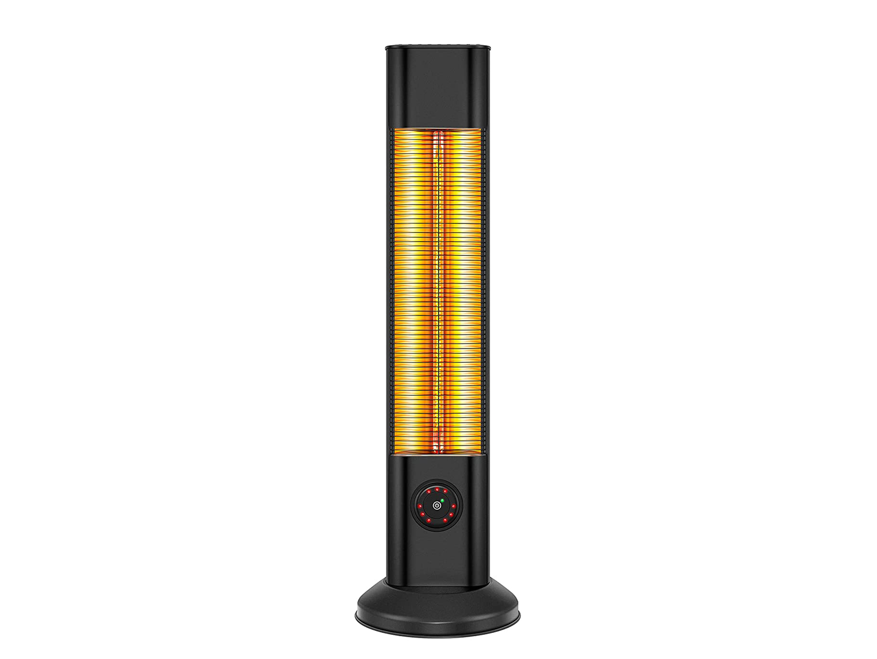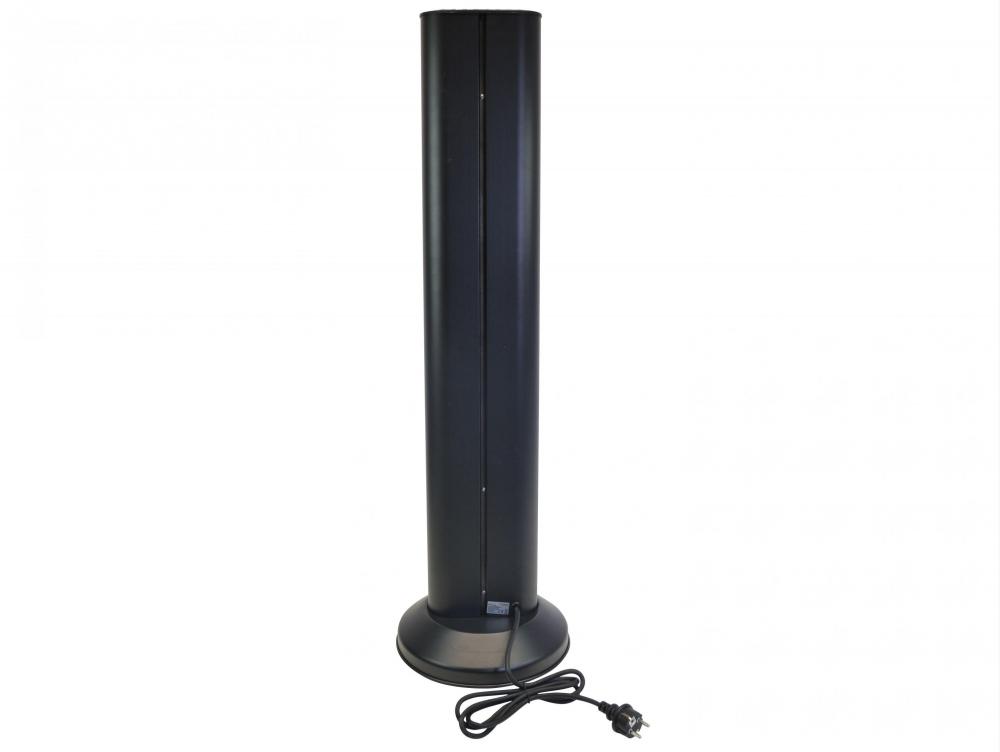 Aquecedor de halogéneo com protecção IP55. Desenho na forma de uma torre de 2000W. Feito de metal, mede 15x55x95 cm e é ideal para salas até 18m2.