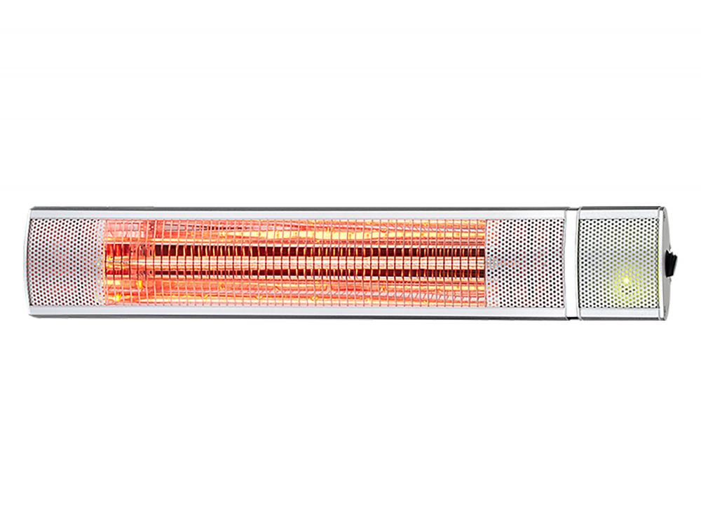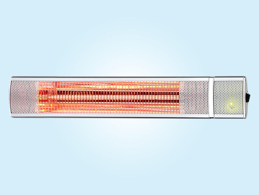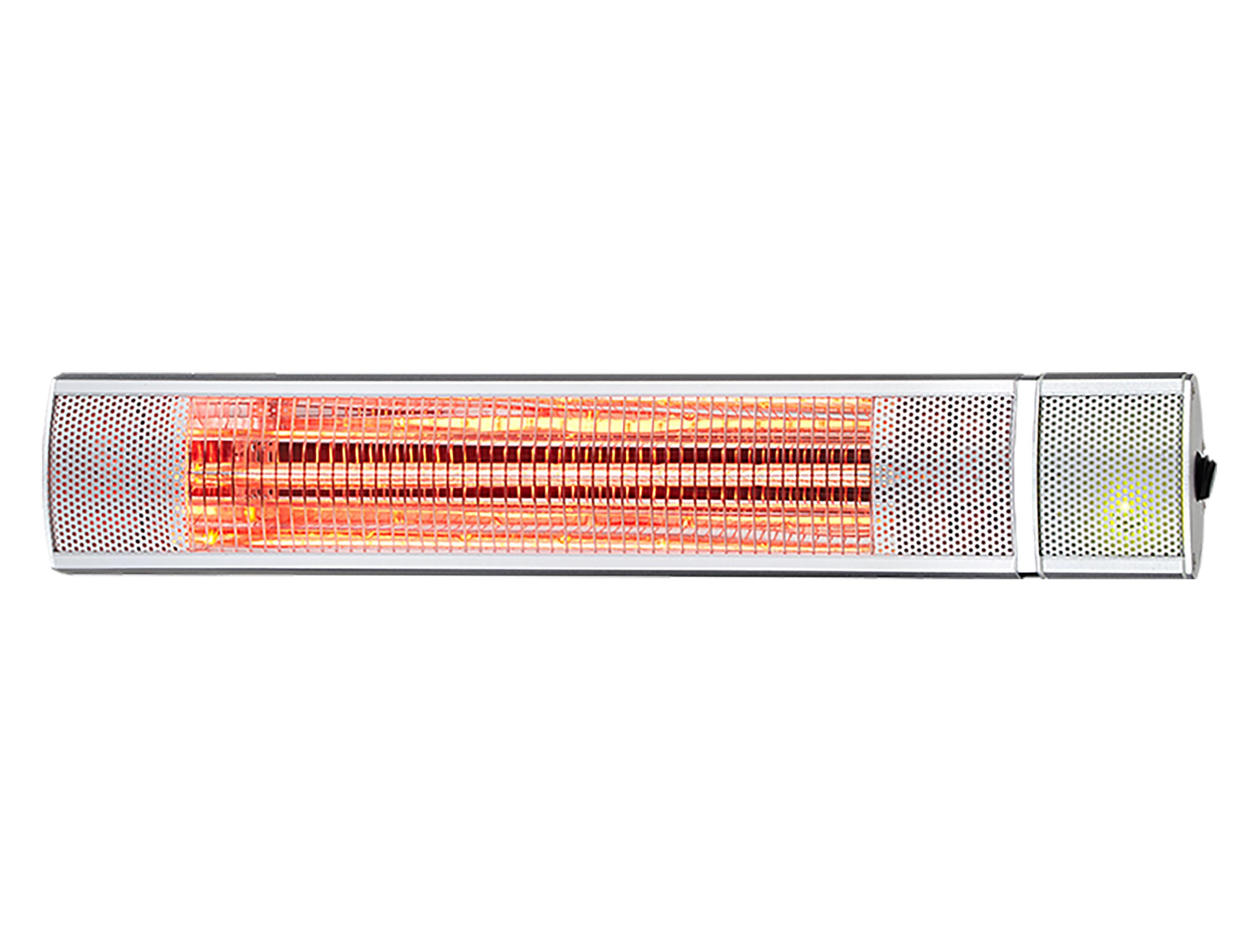 Aquecedor de halogéneo de 2000W com protecção IP55. Desenho horizontal para montagem em parede de metal. medidas 63x15x10 cm.
