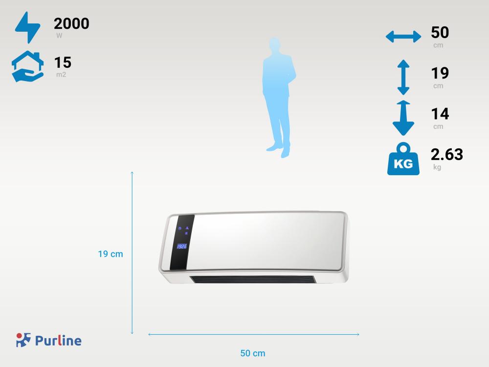 Aquecedor de parede cerámico 2000 W com visor digital, controlo remoto e temporizador