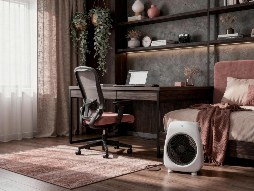 É muito fácil de utilizar, tem um botão de ligar e três modos que se adaptam às suas necessidades: ventilação, morno ou quente. Com um elegante design branco (CxPxA: 21x14x27 cm) e leve (1kg), aquece superfícies até 12m2.