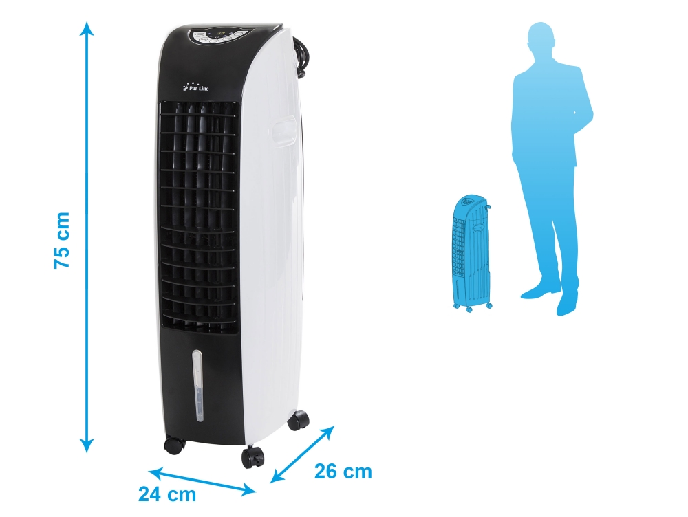 Com um design compacto terminado em prata com detalhes em preto, o seu tamanho (LxDxH: 24 x 26 x 76 cm) e peso (4,5kg) tornam-no ideal para divisões até 15m2, e graças às suas rodas pode deslocá-lo de acordo com as suas próprias necessidades.