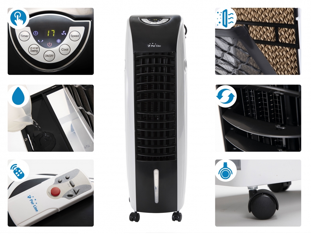 Já pensou alguma vez num sistema de ar condicionado acessível, simples e confortável para a sua casa? Esta Purline evaporativa é a solução para sobreviver ao calor, porque funciona graças a uma tecnologia de refrigeração avançada e silenciosa que retira água do seu tanque (6L) e graças ao seu painel evaporativo de celulose arrefece-a e expulsa-a, arrefecendo rapidamente o ambiente sem compressores ou refrigerantes químicos, totalmente ecológica e boa para a sua saúde.