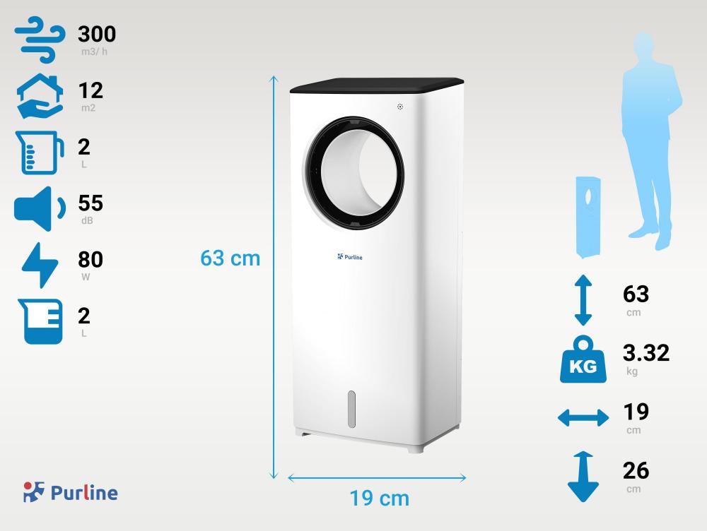 Arrefecedor evaporativo sem lâminas com 3 velocidades e 2L PURLINE