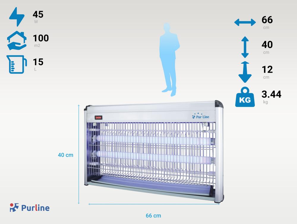 Com 45W de potência, é totalmente ecológico, não utiliza produtos químicos ou sprays, e graças à sua grade protectora será o melhor aliado da família.