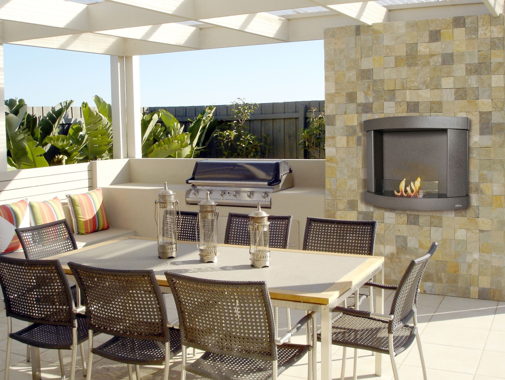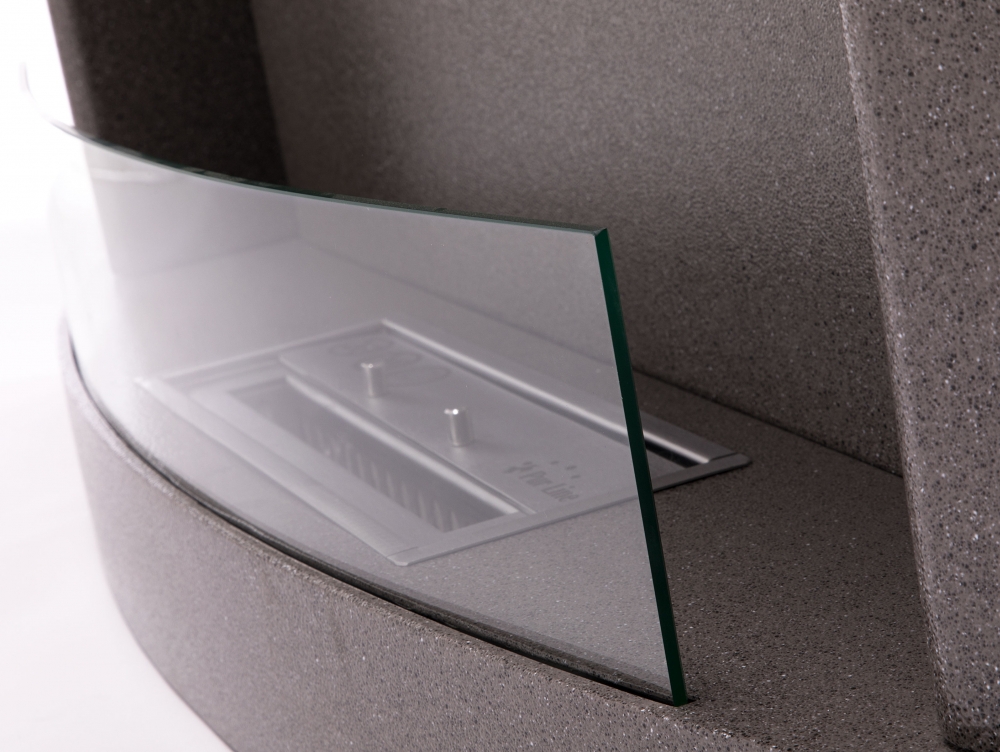 Lareira a etanol feita de aço preto e vidro temperado. Tem uma capacidade de 1L e atinge 2kW de potência. Inclui kit de suspensão para instalação na parede. Não há necessidade de trabalho de construção. Não gera fumo, odores ou cinzas.