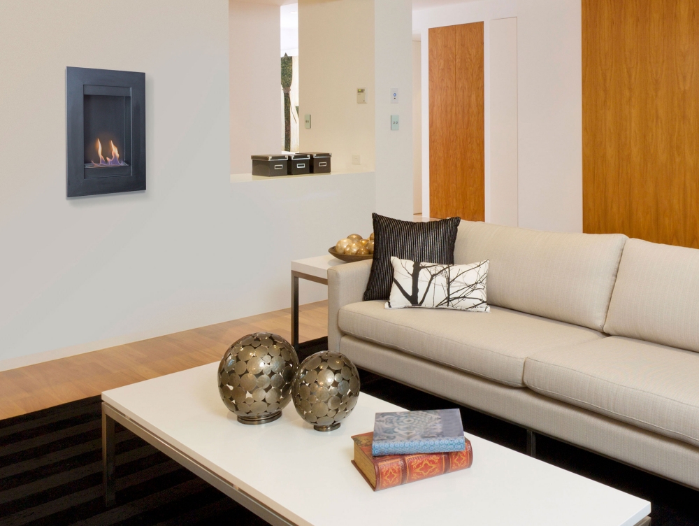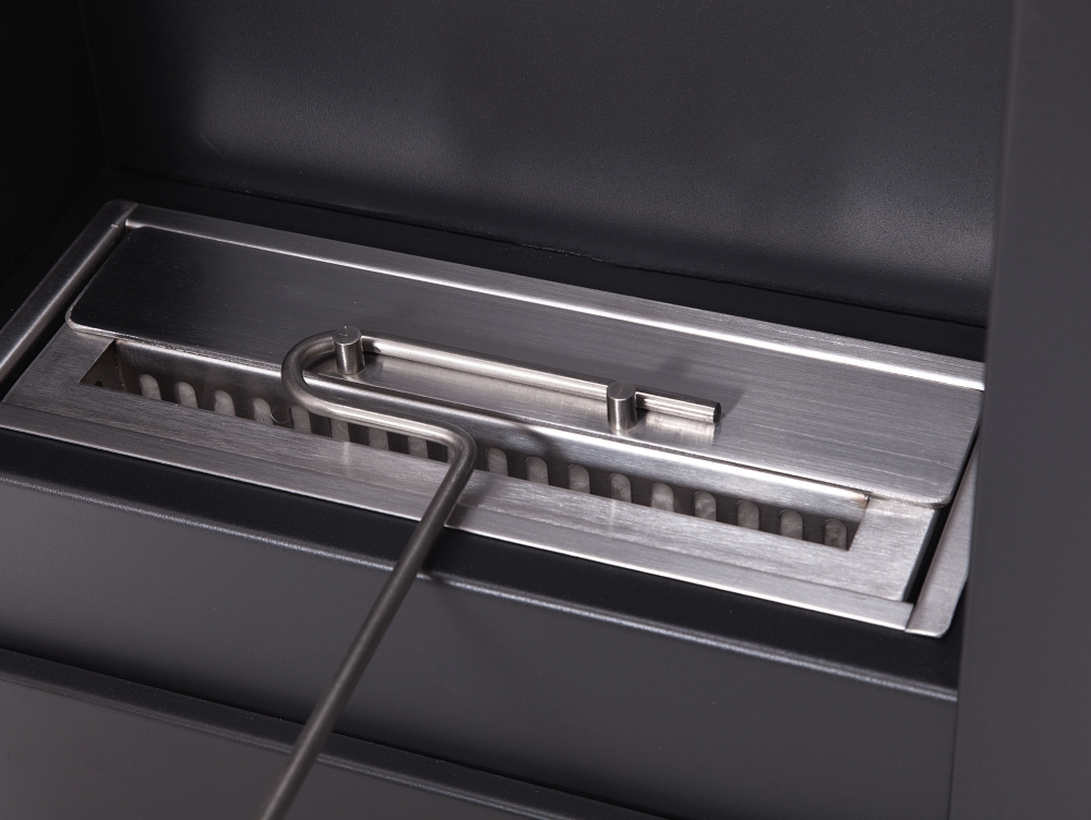 Lareira a etanol com capacidade de 2kW e 1L. Desenho rectangular em aço esmaltado a preto. Chama ajustável. Sem fumos, odores ou cinzas.