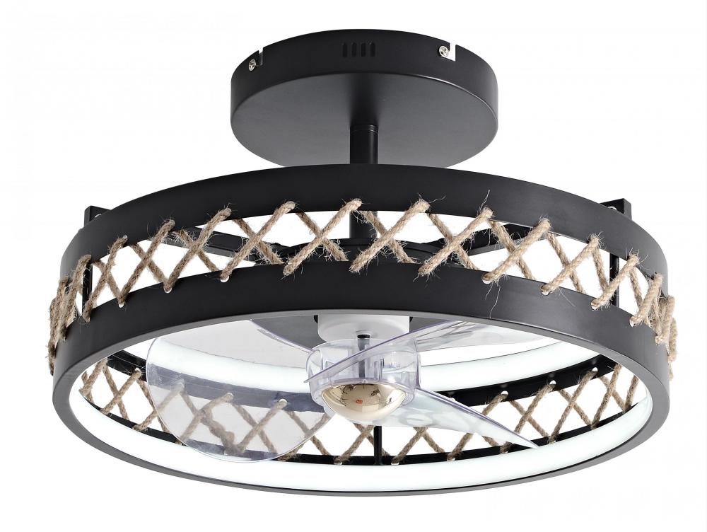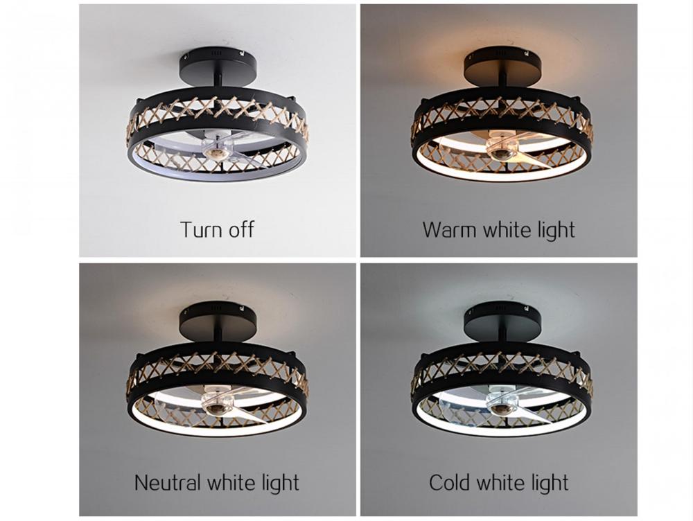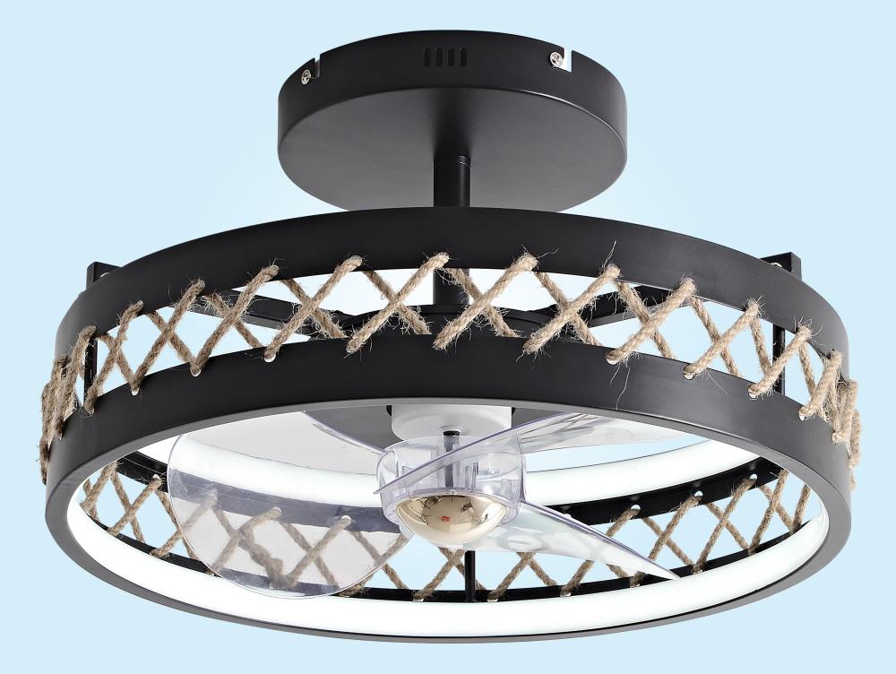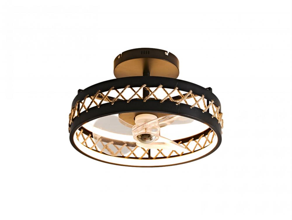 Candeeiro de ventoinha LED com pormenores de acabamento em corda