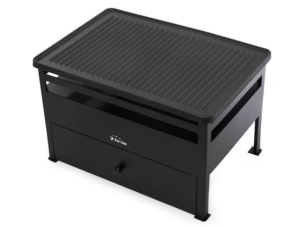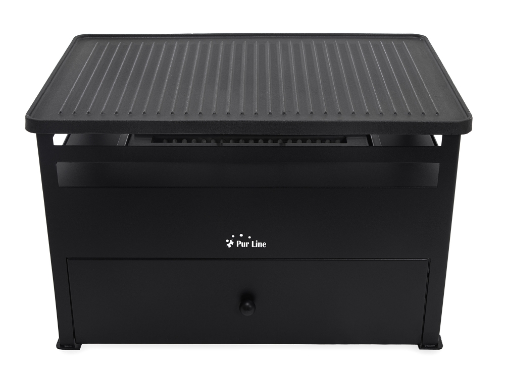 Churrasco de etanol de alto poder calorífico. A sua ampla chapa de ferro fundido permite-lhe cozinhar os seus alimentos de uma forma ecológica e económica, sem fumo nem odores.