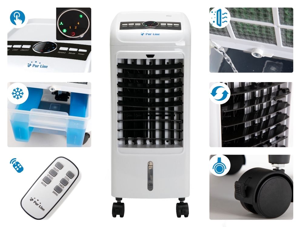 Já pensou alguma vez num sistema de ar condicionado acessível, simples e confortável para a sua casa? Esta Purline evaporativa é a solução para sobreviver ao calor, porque funciona graças a uma tecnologia de refrigeração avançada e silenciosa que retira água do seu tanque (4L) e graças ao seu painel evaporativo de celulose arrefece-a e expulsa-a, arrefecendo rapidamente o ambiente sem compressores ou refrigerantes químicos, totalmente ecológica e boa para a sua saúde.