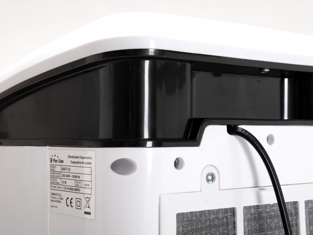 O RAFY 55 tem um painel digital com três velocidades e 3 modos alternativos, temporizador e oscilação automática para melhorar a distribuição do ar e oferecer uma experiência completamente personalizada, tem também uma dupla função de humidificação e purificação do ar, tudo para um consumo máximo de 75W, dez vezes inferior a qualquer aparelho portátil de ar condicionado. Entre os seus extras encontrará a possibilidade de controlo remoto através de controlo remoto.