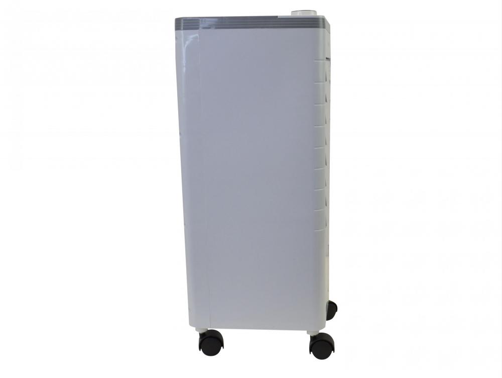 Arrefecedor evaporativo compacto com grelhas dobráveis Design compacto. 60W. Caudal: 350m3/h. 3 velocidades Lâminas frontais rebatíveis. Controlo mecânico. Inclui dois acumuladores de frio. Com rodas para facilitar a deslocação.