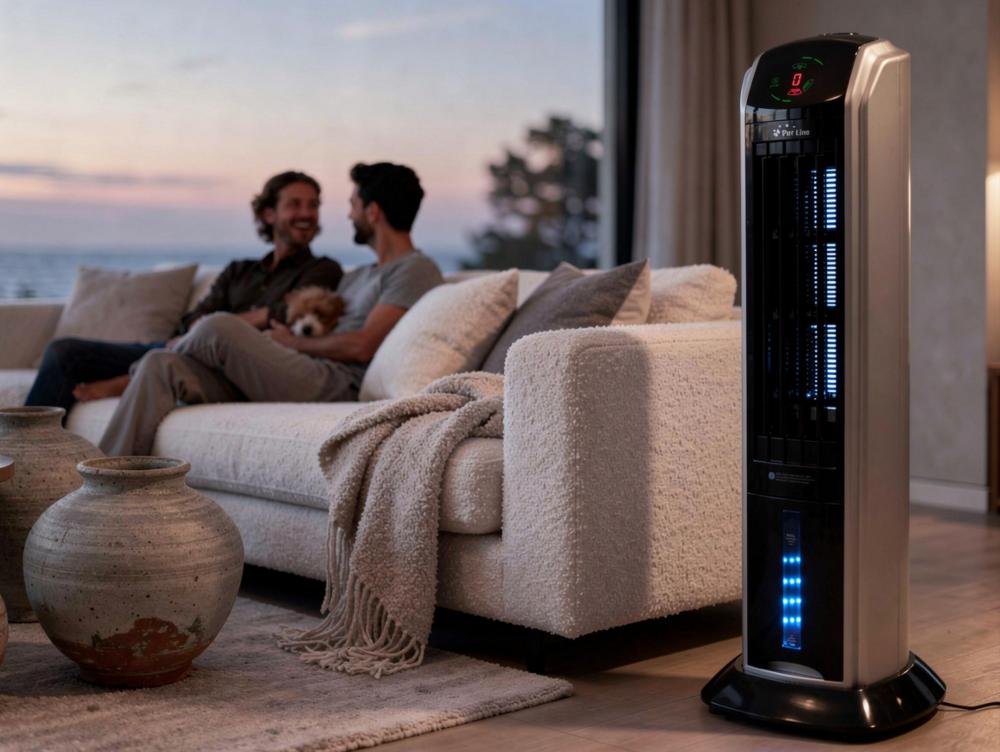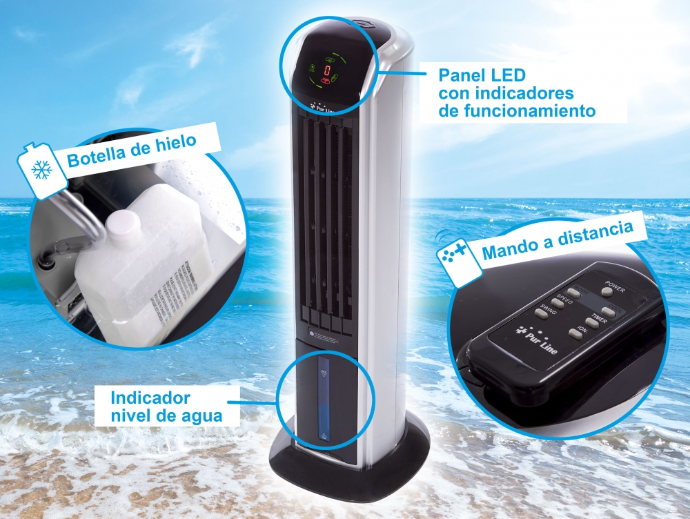 Já pensou alguma vez num sistema de ar condicionado acessível, simples e confortável para a sua casa? Esta Purline evaporativa é a solução para sobreviver ao calor, porque funciona graças a uma tecnologia de refrigeração avançada e silenciosa que retira água do seu tanque (4L) e graças ao seu saco de gelo e ao seu ionizador arrefece e expulsa-o, arrefecendo rapidamente o ambiente sem compressores ou refrigerantes químicos, totalmente ecológico e bom para a sua saúde.
