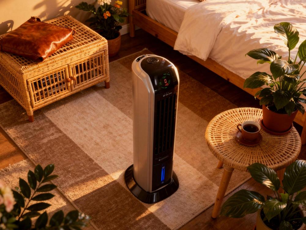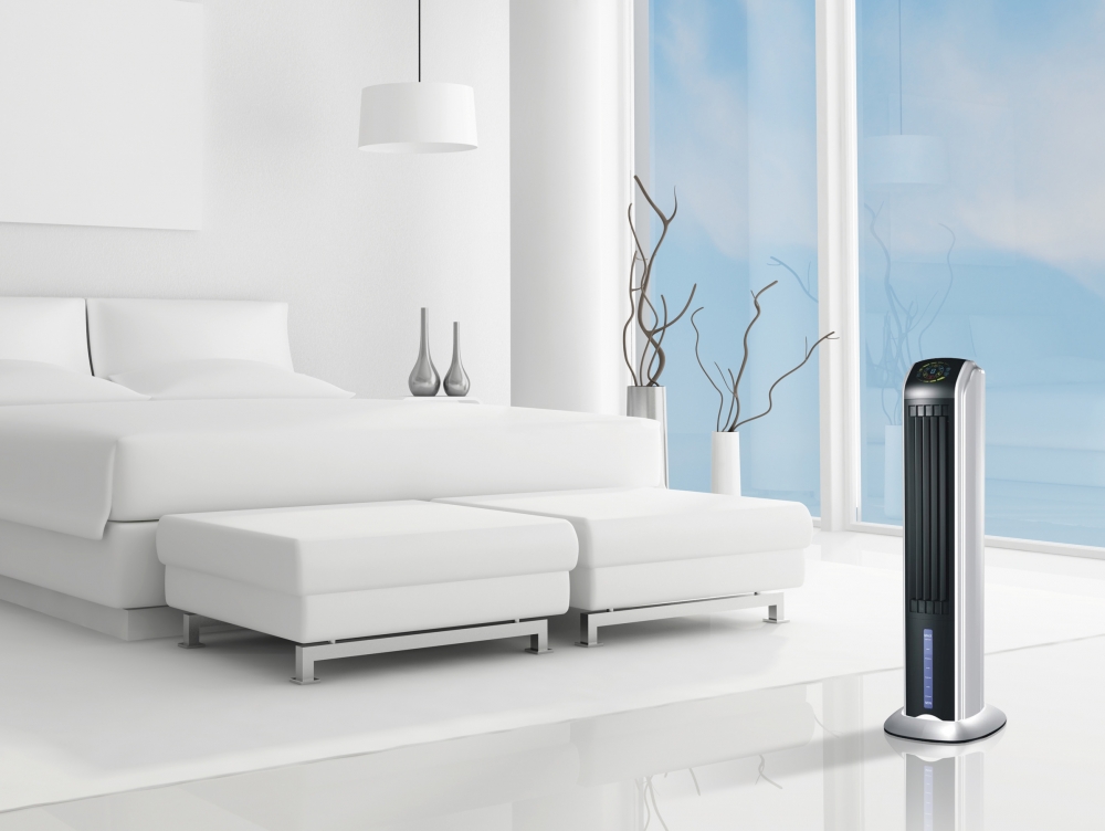 Com um design compacto terminado em prata com detalhes em preto, o seu tamanho (LxDxH: 31 x 29 x 88 cm) e peso (5,1kg) tornam-no ideal para divisões até 15m2.