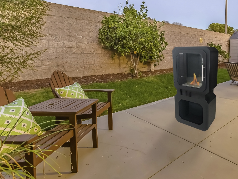 Salamandra bioetanol com dois volumes separados de formas quadradas