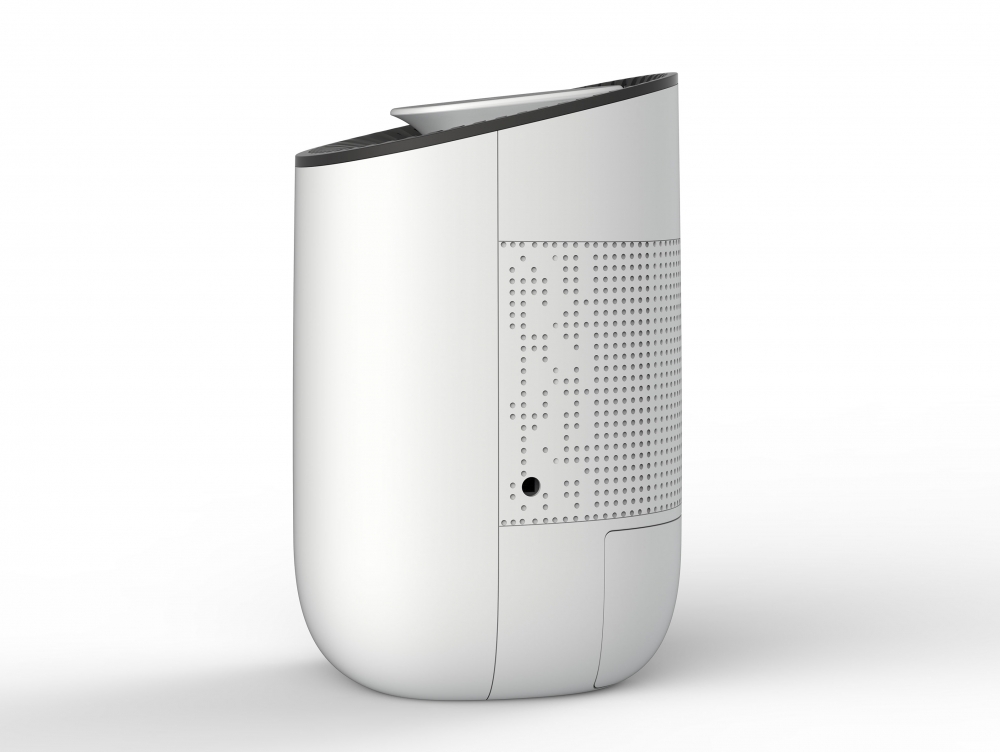 O seu design moderno e compacto, em ABS branco, alia elegância e eficácia. Muito fácil de utilizar, este equipamento possui um botão ON/OFF, dois indicadores luminosos e um depósito de 600ml. As suas dimensões (CxLxA: 14,6x14,6x14,6x22,5 cm) e leveza (1kg) tornam-no ideal para superfícies até 5m2.