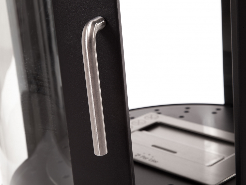 Acabamento: A?o cor preto. Triplo Cristal temperado.