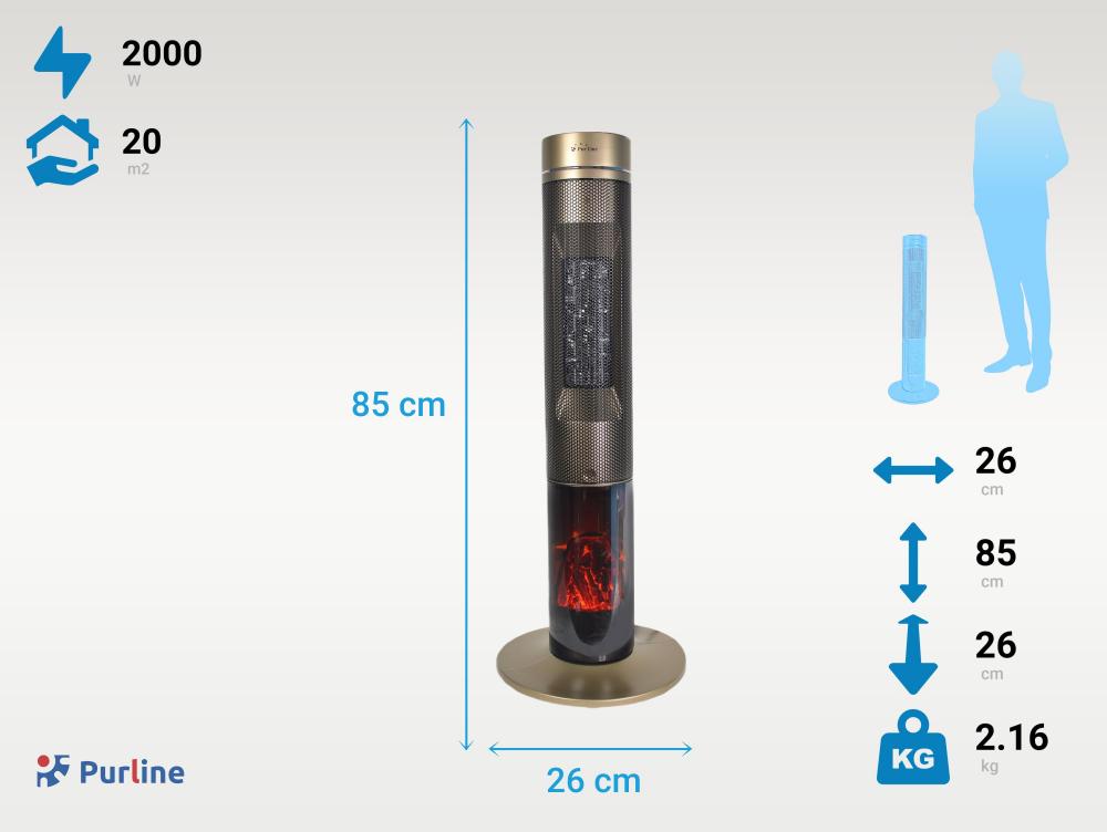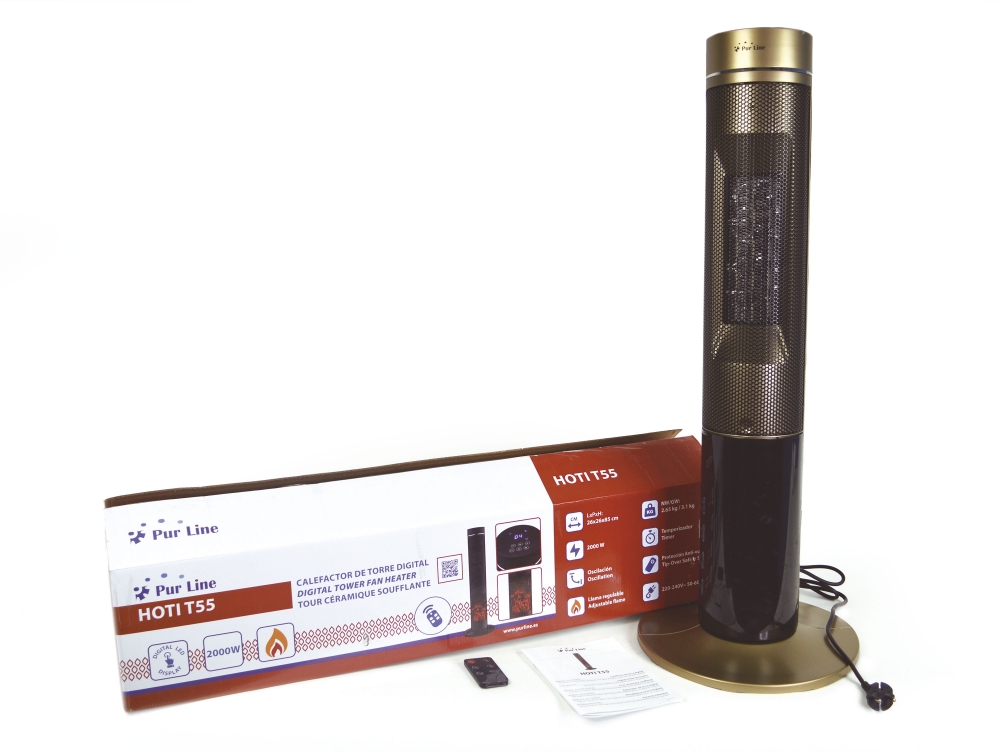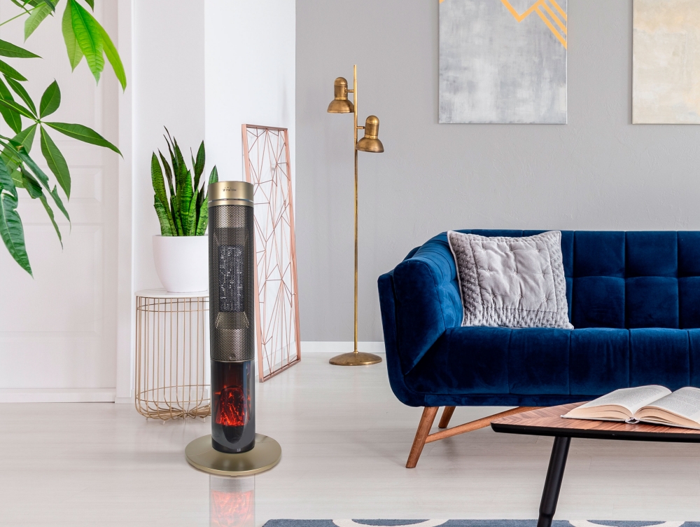 Característica em destaque: Aquecedor de torre com efeito de fogo visual