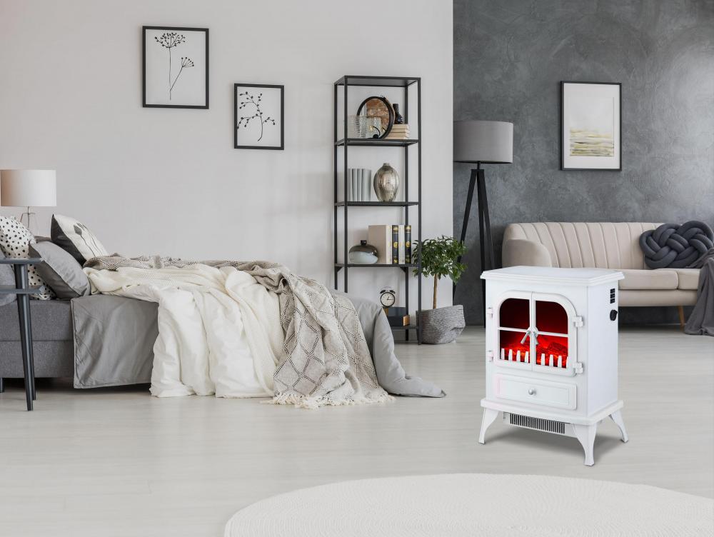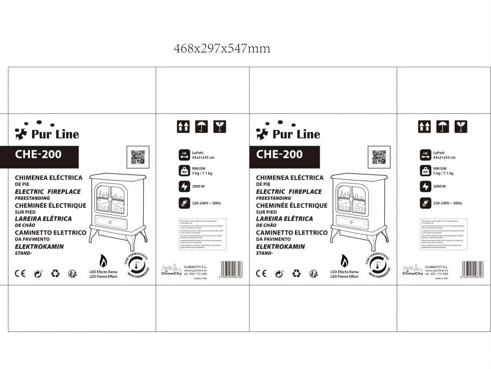 A CHE-200 é uma lareira feita de MDF branco e um interior preto que irá destacar a intensidade das chamas. O seu design retro segue a imagem tradicional das lareiras tradicionais, com uma porta frontal de vidro temperado e quatro pernas, dando um toque único e pessoal à sua casa. Possui um termóstato para regular a temperatura e regular a intensidade das chamas, 2 potências de aquecimento e um temporizador para programar o desligamento automático. As suas dimensões (CxPxA: 43 x 55 x 31 cm) e a sua leveza (9Kg) permitirão deslocar a lareira para onde mais precisar, ajudando a criar um ambiente acolhedor, único e totalmente seguro graças à sua proteção contra o sobreaquecimento.