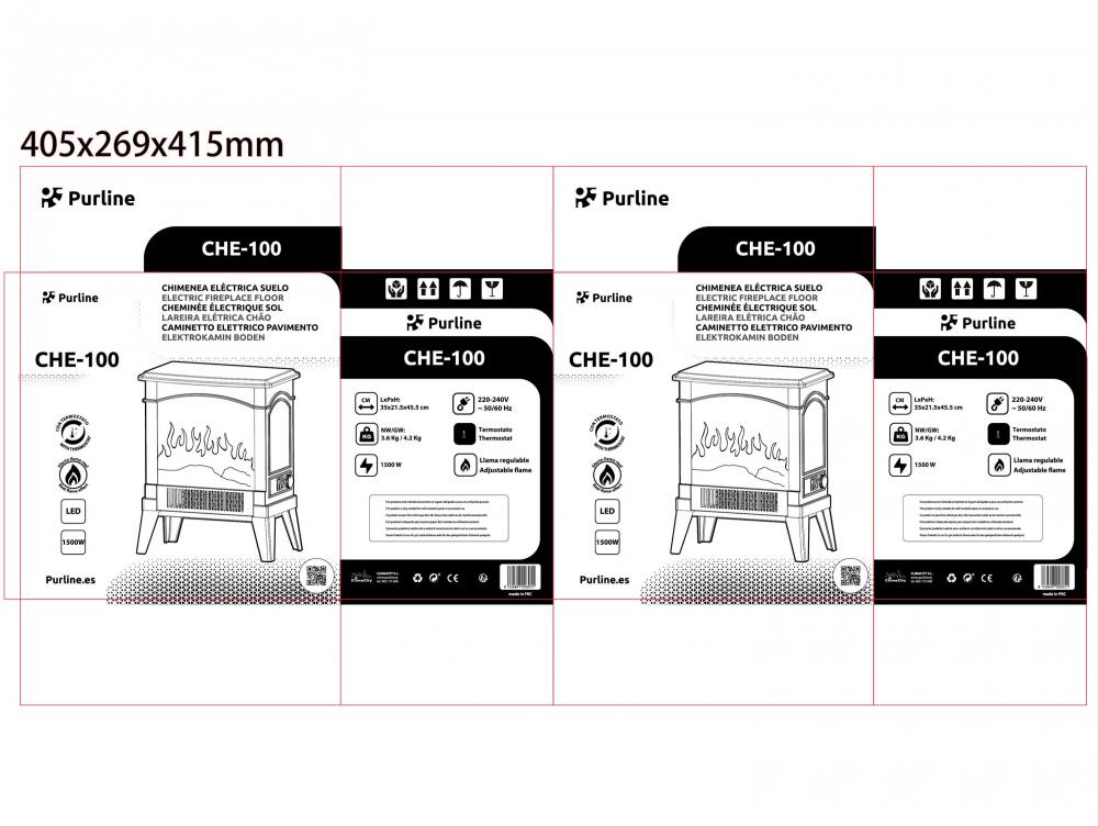 A CHE-100 é uma lareira de chão fabricada na cor preta com um design retrô, equipada com pés e painel frontal de vidro temperado, que acrescenta um toque especial e autêntico à sua casa. Possui controle mecânico de onde é possível selecionar entre os dois modos de potência.