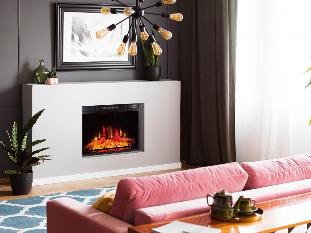Lareira elétrica com chama ajustável, controle remoto e aquecedor