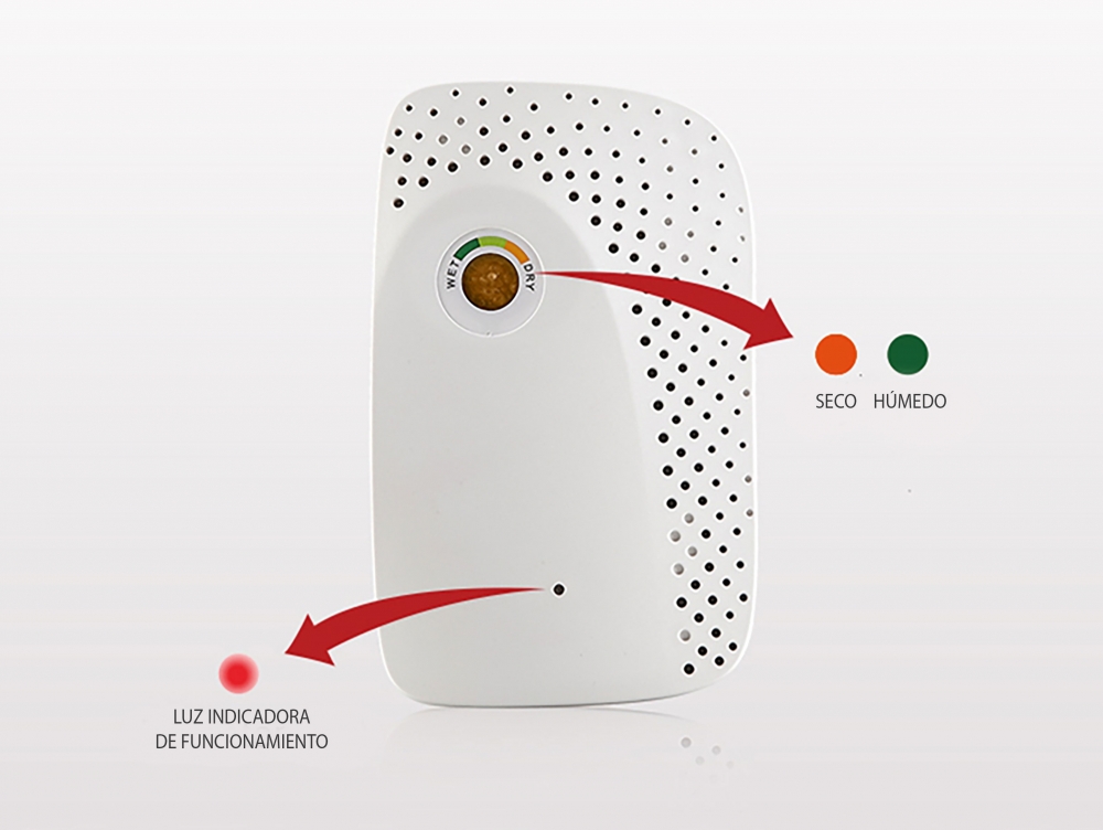 O DRYOS MINI é um desumidificador com controlo de humidade que funciona sem compressor ou gás, por isso é totalmente silencioso. Baixo consumo, funciona graças ao gel de sílica no interior e absorve a humidade, completamente independente das fontes de energia externas.