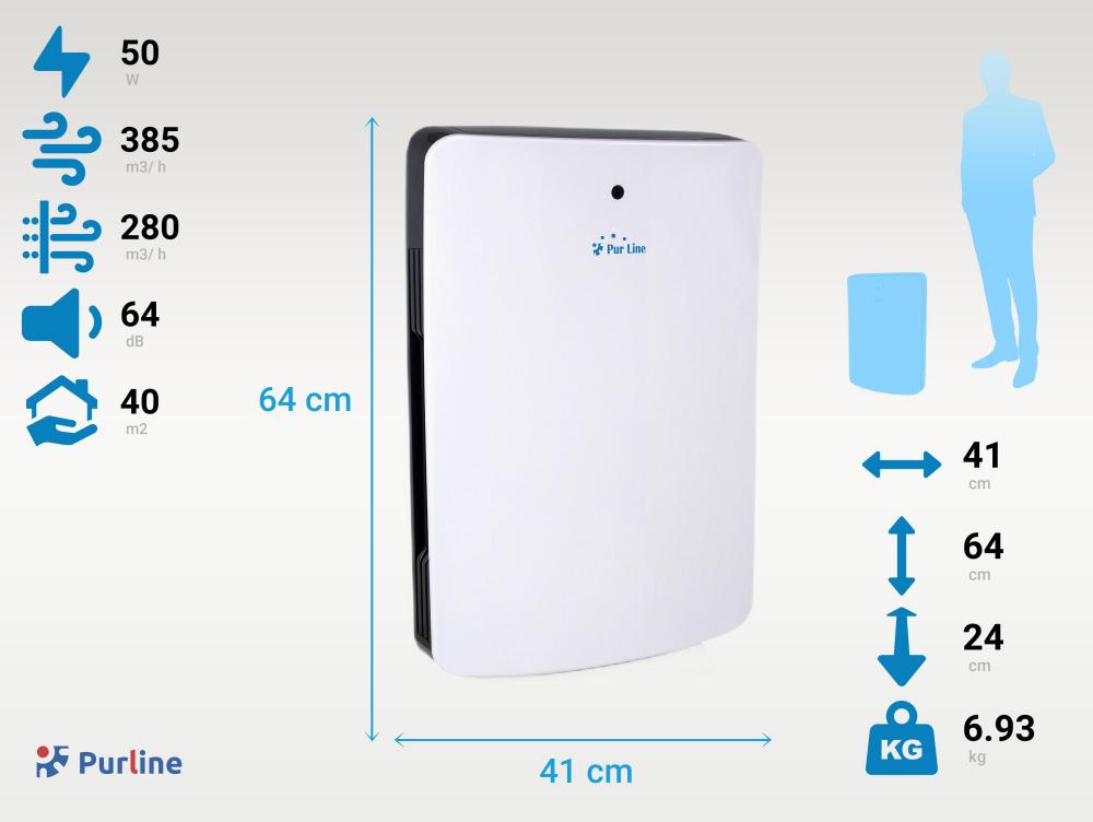 Característica em destaque: Grande número de filtros que cobrem uma grande superfície de até 60m2.